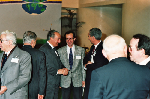 Carlo Bernini, Presidente della Regione Veneto, tra gli imprenditori riuniti presso l'Agricenter in attesa dell'arrivo di Giovanni Paolo II in visita a Verona
