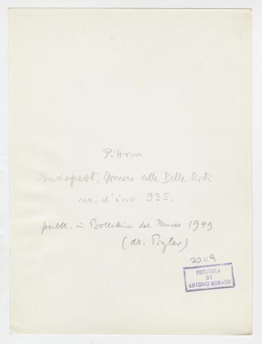 Riproduzione fotografica di uno dei due dipinti di Giambattista Pittoni raffiguranti san Rocco, oggi conservati al Szépművészeti Múzeum di Budapest, pubblicati da André Pigler nel Bollettino del Museo (1949). L'estratto del contributo di Pigler venne inserito da Antonio Morassi nella cartella "G.B. Pittoni".