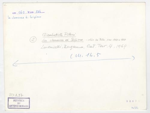 Riproduzione fotografica del dipinto di Giambattista Pittoni raffigurante la Clemenza di Scipione, oggi a Monaco, Alte Pinakothek (Zava Boccazzi 1979, p. 144, cat. 120).