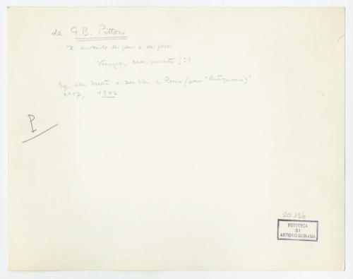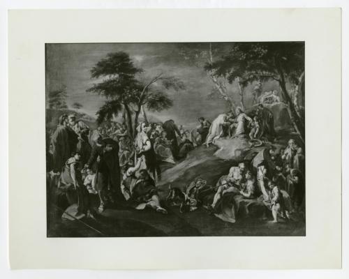 Riproduzione fotografica della copia, in collezione privata, del dipinto di Giambattista Pittoni raffigurante la moltiplicazione dei pani e dei pesci conservata presso le Gallerie dell'Accademia di Venezia. Antonio Morassi non vi riconosce l'autografia pittoniana (Zava Boccazzi 1979, p. 202, cat. S36).