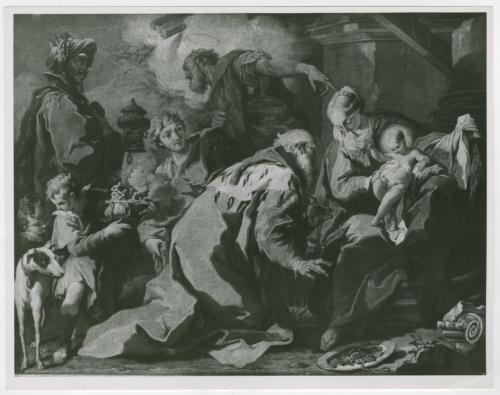 Riproduzione fotografica del dipinto di Giambattista Pittoni raffigurante l'Adorazione dei Magi, già in collezione Hans Wendland a Lugano, poi in collezione Lederer (Zava Boccazzi 1979, p. 130, cat. 65).