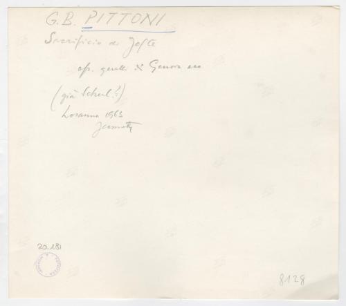 Riproduzione fotografica del modelletto del dipinto di Giambattista Pittoni raffigurante il sacrificio della figlia di Jefte, precedentemente identificato nel sacrificio di Ifigenia (Zava Boccazzi 1979, p. 163, cat. 195).