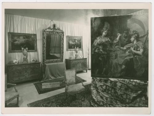 Riproduzione fotografica del dipinto di Giambattista Pittoni raffigurante il banchetto di Antonio e Cleopatra in collezione privata americana (Zava Boccazzi 1979, pp. 146-147, cat. 129), qui immortalato ancora nella Galleria di Giuliano Canessa, prima della vendita, insieme ad altri dipinti e oggetti d'arte.