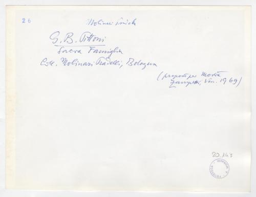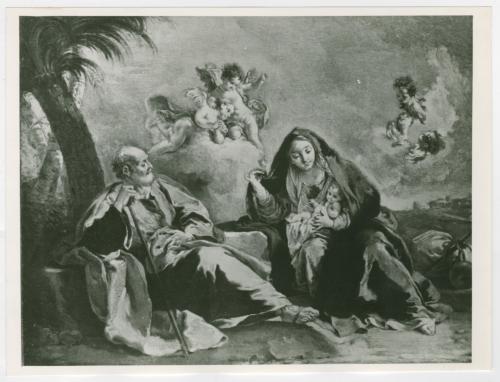 Riproduzione fotografica in controparte del dipinto di Giambattista Pittoni raffigurante il riposo della Sacra Famiglia durante la fuga in Egitto, in collezione Molinari Pradelli (Zava Boccazzi 1979, pp. 116-117, cat. 18).