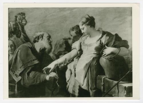 Riproduzione fotografica del dipinto di Giambattista Pittoni raffigurante Rebecca riceve doni da Eliezer, conservato a Bordeaux, Musée des Beaux-Arts (Zava Boccazzi 1979, p. 117, cat. 20).