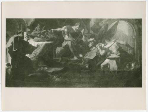 Riproduzione fotografica del dipinto di Giambattista Pittoni raffigurante Sant'Eustachio rifiuta di offrire sacrifici agli idoli, conservato a Venezia, nella chiesa di San Stae (Zava Boccazzi 1979, pp. 170-171, cat. 210).