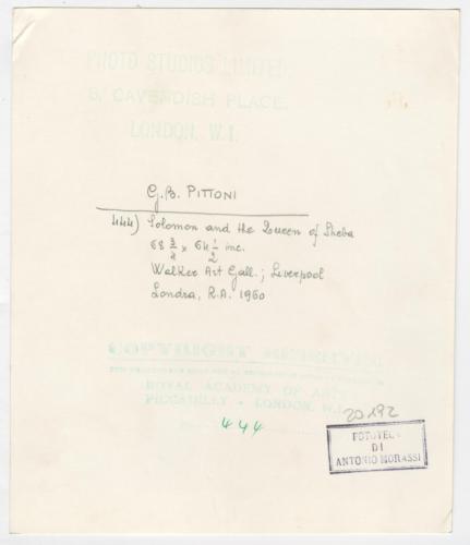 Riproduzione fotografica del dipinto di Giambattista Pittoni raffigurante Salomone e la regina di Saba, conservato alla Walker Art Gallery di Liverpool (Zava Boccazzi 1979, p. 134, cat. 82).