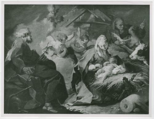 Riproduzione fotografica del dipinto di Giambattista Pittoni raffigurante la Natività di Gesù, già in collezione Hans Wendland a Lugano, poi in collezione Lederer e recentemente passato in asta da Sotheby's (London, 6 luglio 2023, lot. 168).