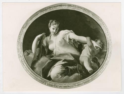 Riproduzione fotografica del dipinto di Giambattista Pittoni raffigurante Onfale e Cupido, in collezione Pardo di Parigi (Zava Boccazzi 1979, p. 152, cat. 150). Già pubblicato come Venere e Cupido, Antonio Morassi invece proponeva di identificare Diana nella figura femminile.