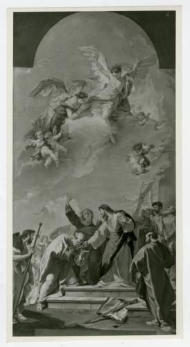 Riproduzione fotografica del modelletto di Giambattista Pittoni, raffigurante Cristo che consegna le chiavi a san Pietro, conservato a Oxford, The Ashmolean Museum of Art and Archaeology. Si tratterebbe di una diversa versione del modelletto conservato a Parigi, Musée du Louvre (Zava Boccazzi 1979, pp. 148, 151-152, catt. 136, 146).