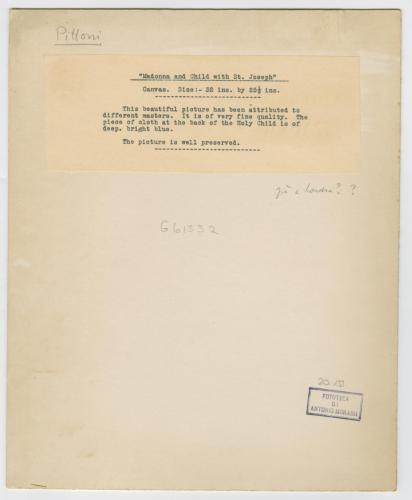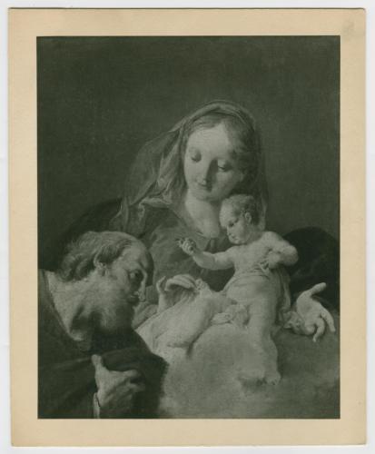 Riproduzione fotografica del dipinto di Giambattista Pittoni raffigurante la Sacra Famiglia, già in collezione privata inglese (Zava Boccazzi 1979, p. 138 cat. 96), al Metropolitan Museum of Art di New York (K. Baetjer, European Paintings in The Metropolitan Museum of Art by Artists Born before 1865, New York 1995, pp. 84-85).