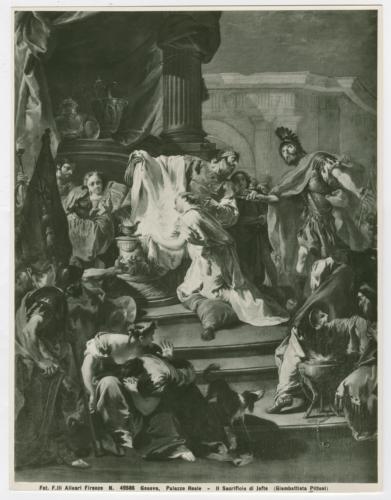 Riproduzione fotografica del dipinto di Giambattista Pittoni raffigurante il sacrificio della figlia di Jefte, conservato a Genova, Palazzo Reale (Zava Boccazzi 1979, pp. 129-130, cat. 63).