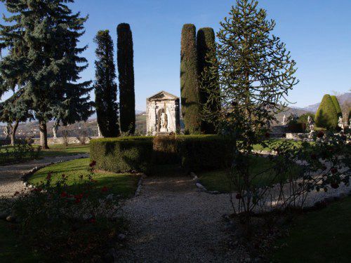Il parco romantico della Villa Godi Malinverni, con le sue piante secolari ed i suoi numerosi viali, venne sistemato nel 1852 per opera del Conte Andrea Piovene su disegno dell'architetto Antonio Caregaro Negrin. Al centro vi è un laghetto. In fondo al parco c'è un grande portale in bugnato: assai probabilmente era quello il cancello principale d'ingresso alla Villa. Nel retro della Villa, prospicenti sul parco, ci sono i giardinetti all'italiana, con vasche e fontane, una cinquantina di statue del Marinali e dell'Albanese, e colonnine dietro cui d'inverno si riponevano i limoni per proteggerli dal gelo. Tali giardinetti risalgono al secolo XVII ed all'inizio del 700. Altri piccoli giardini si trovano nel retro della Villa palladiana, all'uscita dalla cucina del 500 ed all'ingresso del Museo dei Fossili, come pure davanti alla foresteria.