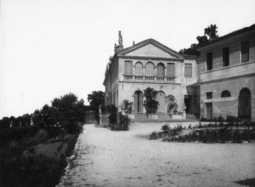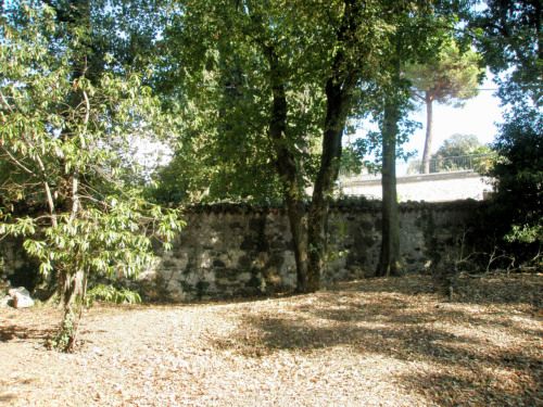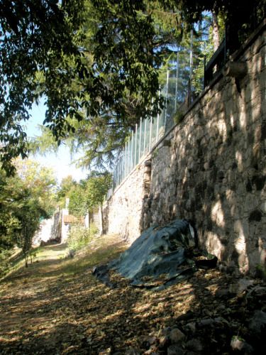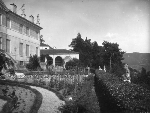 La villa con il giardino sono posti su di un terrapieno, all'altezza della strada. Tutt'intorno si trova il parco della villa.