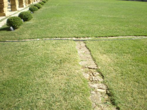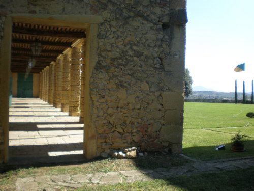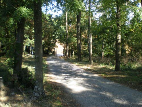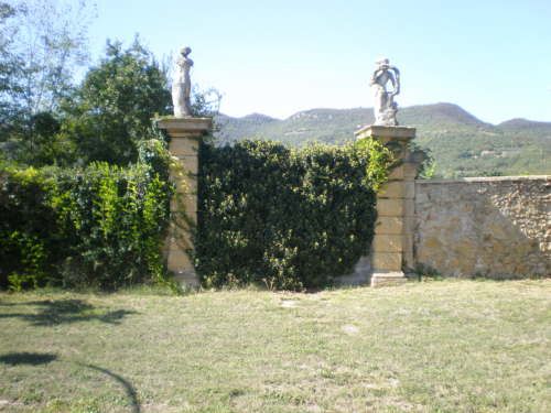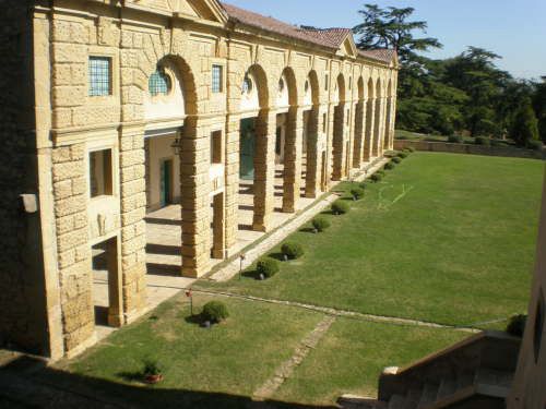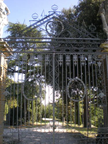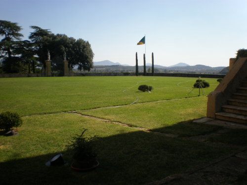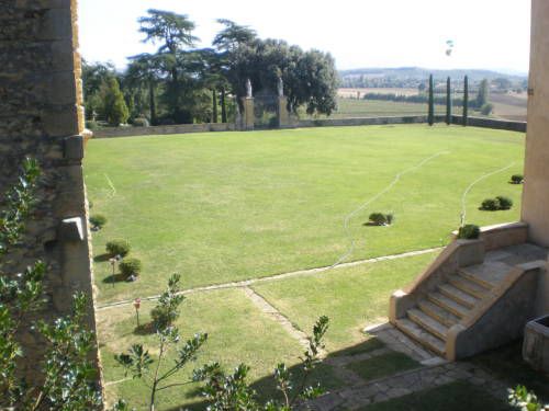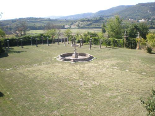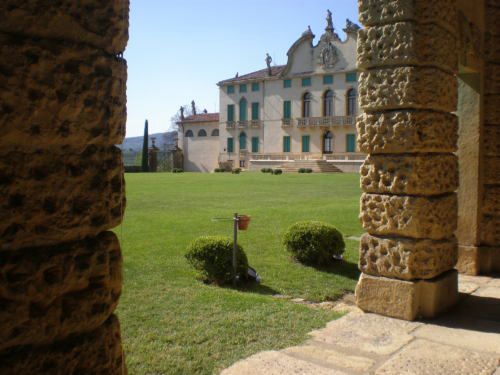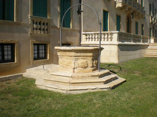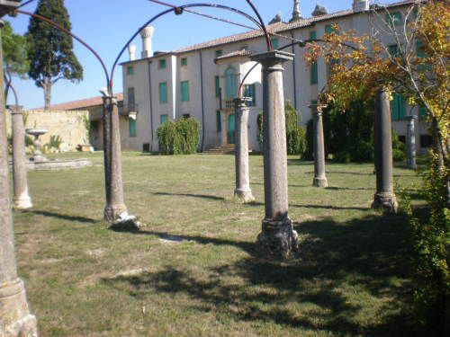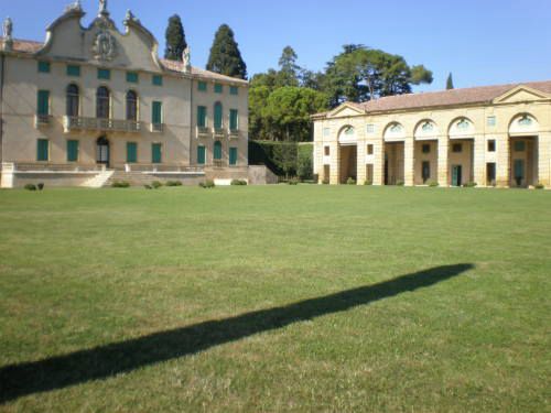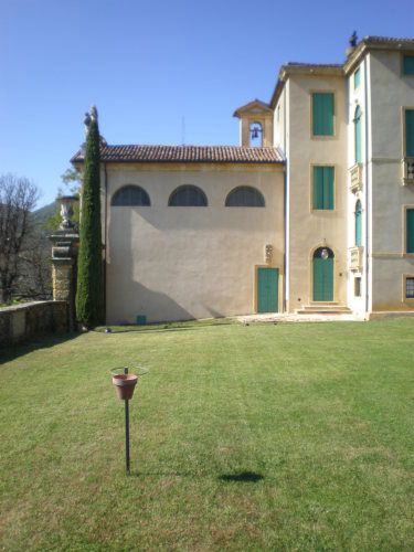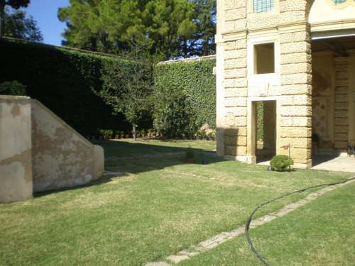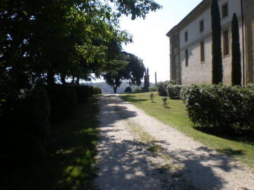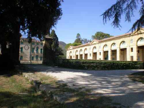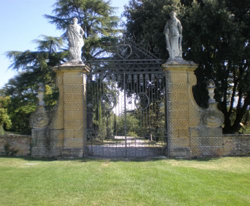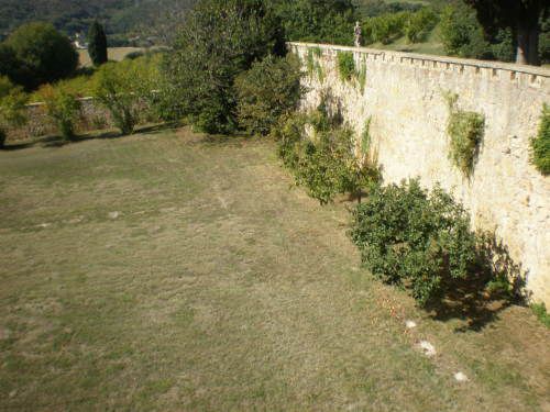 La vasta area verde presenta una forma articolata, suddivisa in diversi ambiti che circondano in tutti e quattro i lati la villa. Vi sono circa dieci ettari di campi agricoli destinati alla coltivazione di vigneti e trenta di seminativo (lato ovest); quaranta ettari di bosco (lato nord) e circa venti di parco (sud-est).
