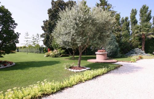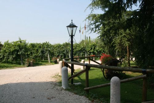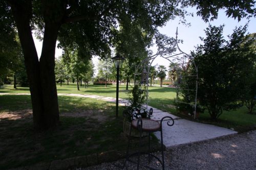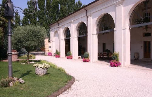 Il complesso è situato a nord-ovest del centro abitato, è composto da una serie di fabbricati disposti su un vasto giardino. Elementi del progetto sono: la torre colombara - centro della composizione -; le barchesse; la casa del fattore e alcuni edifici rustici. Lo scoperto davanti alla villa è lasciato a prato, la villa ha mantenuto la sua vocazione agricola, circondata da campi di mais e vigne.