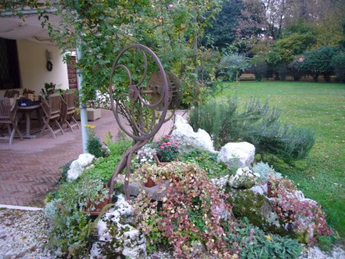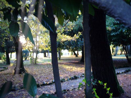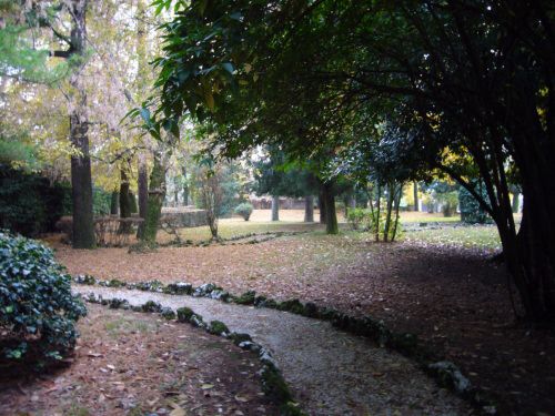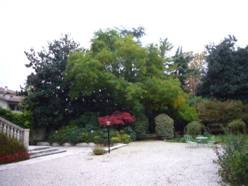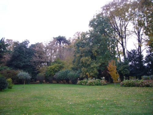 Il parco che si sviluppa sul lato ovest della villa presenta un doppio filare di tigli sul confine. Presenta una zona destinata ad orto e frutteto nella zona a Nord, nord ovest e sono presenti percorsi non rettilinei una volta a ghiaino ora solo delimitati da sassi.