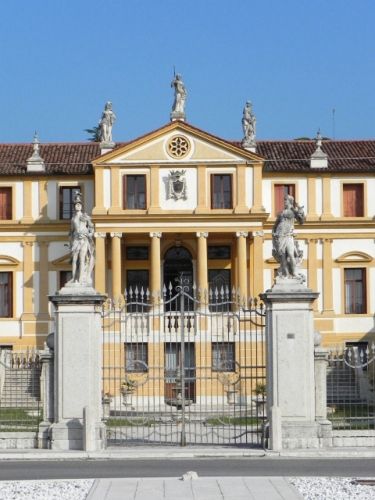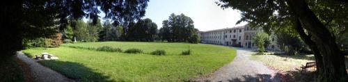 Il complesso, orientato a meridione, si articola in un lungo corpo padronale e in due foresterie che si innestano perpendicolari ad esso, racchiudendo un giardino separato dalla strada da una cancellata interrotta al centro dai due pilastri dellingresso con statue settecentesche. Altro cortile si dispone rispettivamente a oriente creando una corte interna in ghiaino, a nord della villa si apre larea verde divisa in tre grandi zone quella più orientale destinata prevalentemente a prato, quella centrale a parco inglese con un laghetto e un isolotto e la parte ad ovest destinata a brolo.