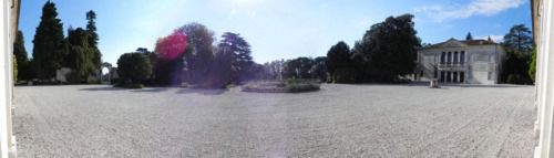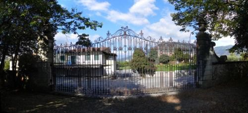 La villa è all'interno di un parco ottocentesco che ha sostituito l'antico giardino formale. Si tratta di un corpo a pianta rettangolare di origine cinquecentesca, ma restaurato nei secoli successivi, con due facciate (una verso il parco, l'altra sulla corte) sostanzialmente simili, con il settore mediano aperto al pianterreno da quattro fori architravati cui corrisponde al piano nobile una quadrifora con balaustra. Adiacente al lato sud della villa è la limonaia cinquecentesca a colonne ioniche reggenti un frontone triangolare. Una serra, oggi sostituita da uno scenografico ninfeo novecentesco, collegava questa limonaia a un'altra simmetrica, delimitando così il lato sud della corte. Il lato nord è definito invece da una lunga fabbrica con portico scandito da lesene giganti che ripartiscono gli archi inframmezzati da strette aperture architravate. Questo corpo a portico si prolunga a ovest in un'ala che guarda verso la strada dove affaccia anche la cappella dalla facciata caratterizzata da due campanili a torre con cupola a cipolla.