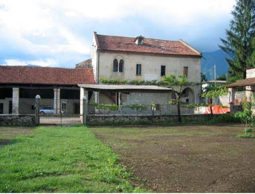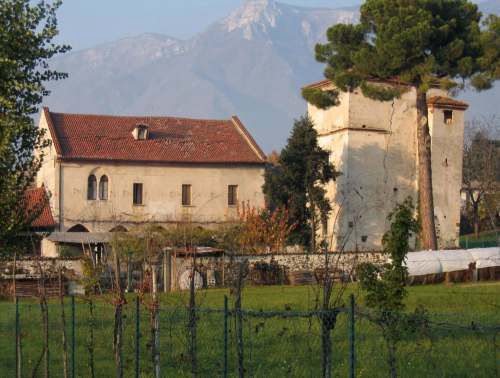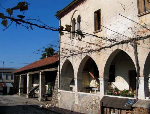 Davanti al volume allungato della barchessa e della villa si apre una corte pavimentata, lunga e stretta, recintata; a sud si conserva lo spazio dell'antico brolo, anch'esso recintato, su cui svetta il volume della colombara posta nell'angolo nord-orientale.