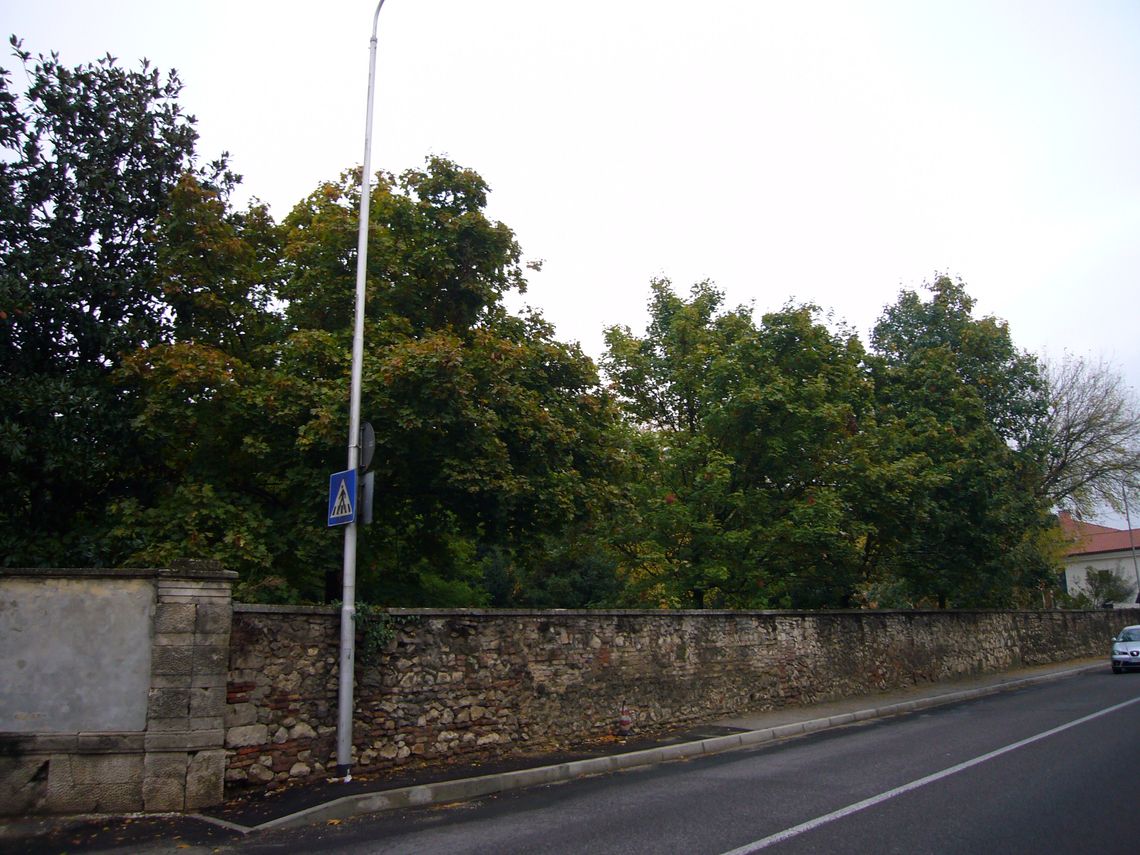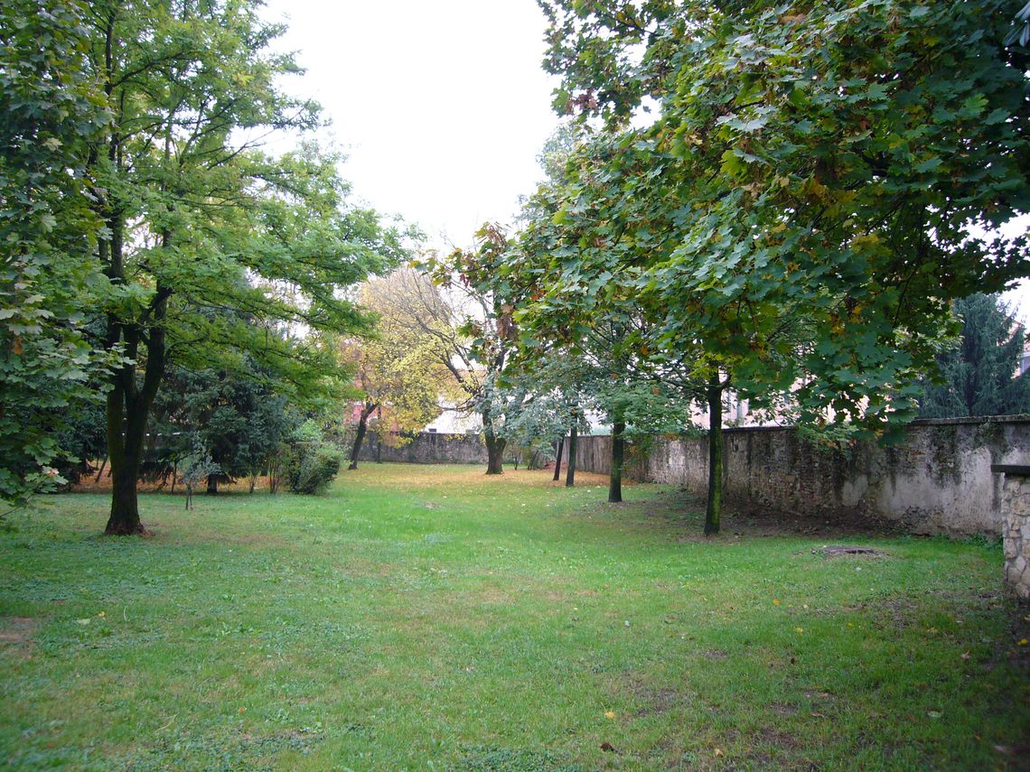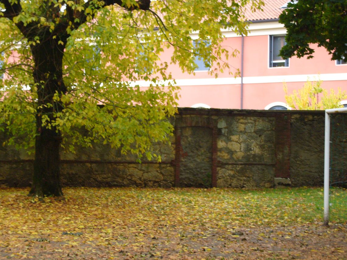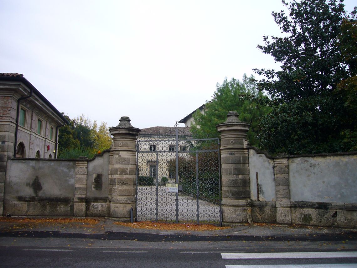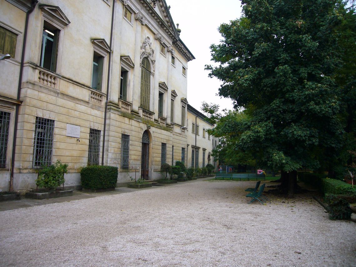 Giardino antistante la villa recintato da un muro e zona verde adibita a parcheggio nella zona retrostante con ingresso da via cipro 10.