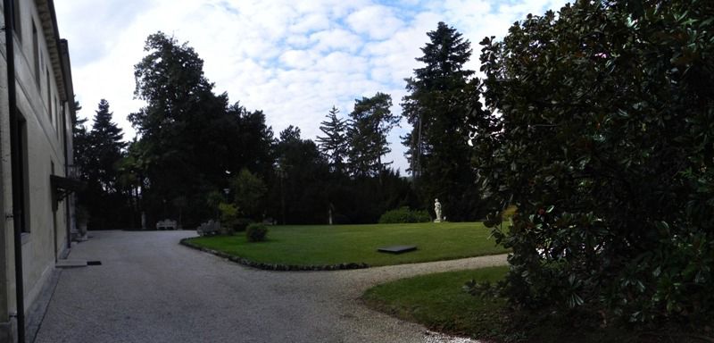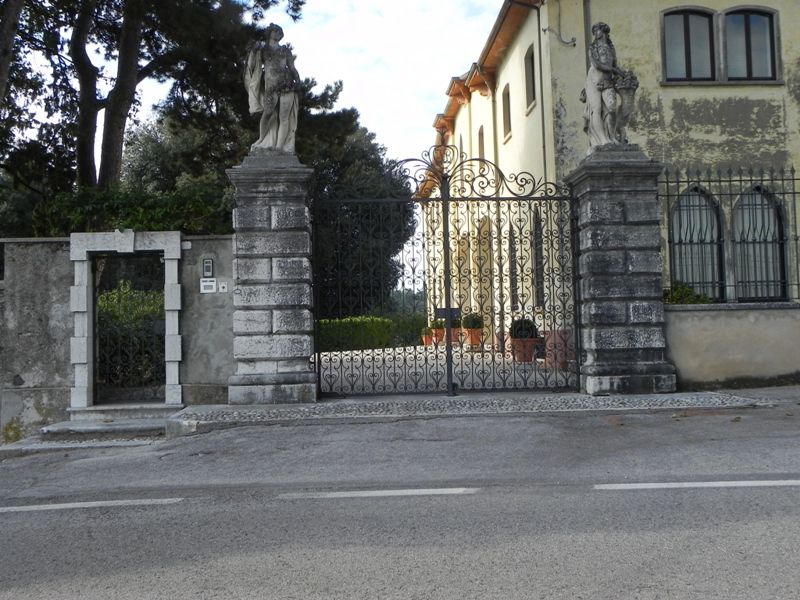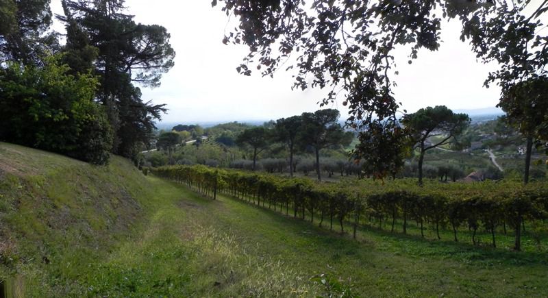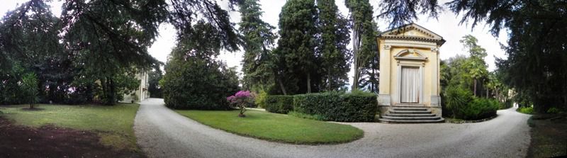 Il complesso sorge nella sommità di un pendio, comprendente un vasto parco che circonda la villa padronale tranne che per il fronte sud, dove domina la scalinata che sale dalla strada pubblica. A lato ovest della scalinata si localizza una serra di pregevole fattura semi incassata sul terreno. Allinterno del parco si localizza un piccolo oratorio proprio lungo la strada di accesso che collega i manufatti adibiti storicamente al servizio della proprietà alla villa padronale. Il resto della proprietà è ad uso prevalentemente agricolo dedicato alla viticoltura.