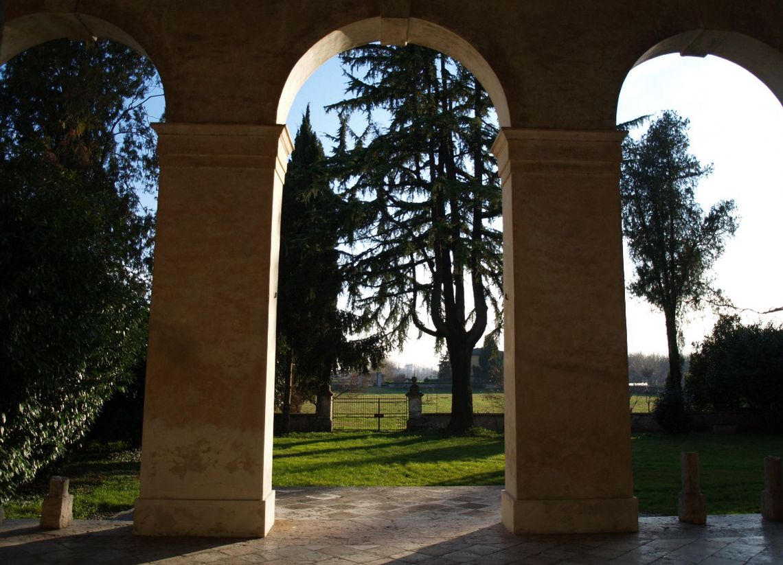 Il complesso, oltre la villa (che assume il suo massimo splendore tra il Sei-Settecento), si compone oggi di due barchesse ed altri annessi rustici, tra cui una casara e una foresteria. Esso si affaccia su due broli, uno posto sul fronte Nord tenuto a vigna, l'altro a Sud in parte con funzione di "corte verde" di accesso alla villa (un tempo il giardino). Il "brolo" a Sud è stato sicuramente ridimensionato nel tempo, tracce delle fondamenta dell'antica mura sono ancora visibili ad una quindicina di metri a Sud dalla stessa. Dell'oratorio dedicato a San Marco resta solamente la lapide murata nel 1750 su quella che era la sua facciata. Le essenze arboree sono di recente impianto (anni '50).