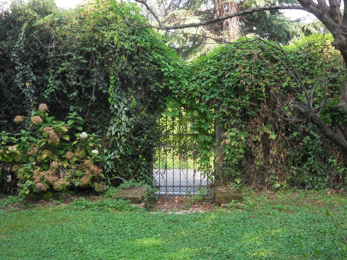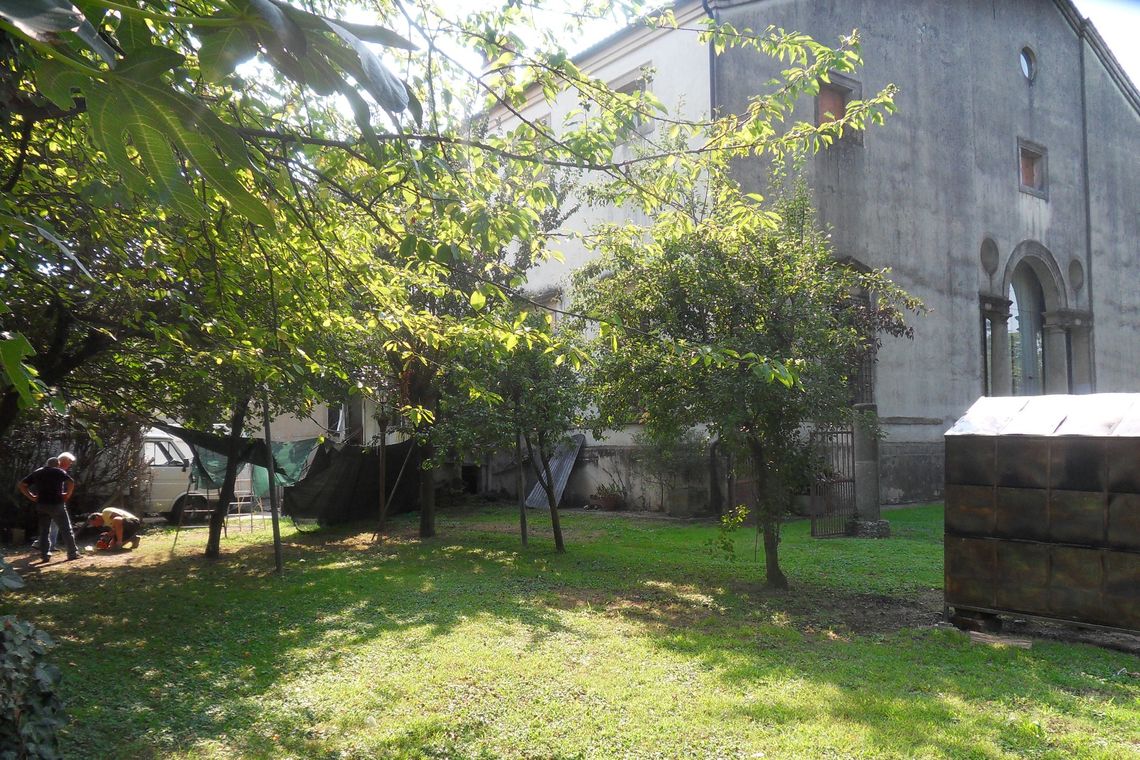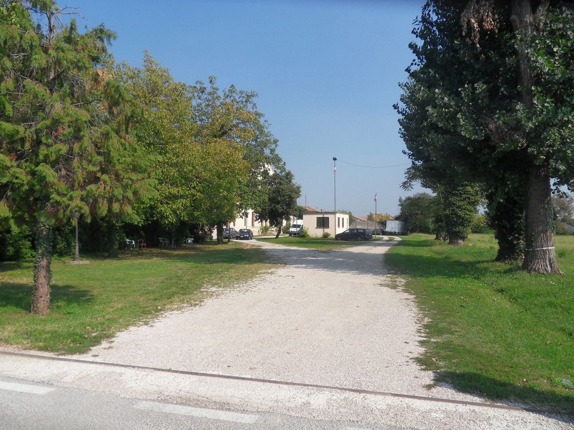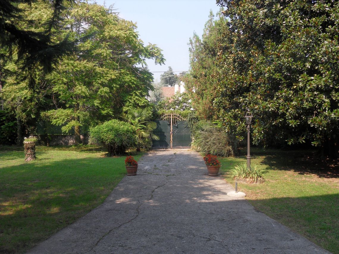A sud, in prossimità del fronte della villa è presente unampia area libera, oggi sterrata e ricoperta da ghiaia, che consente l'accesso e la sosta delle auto.