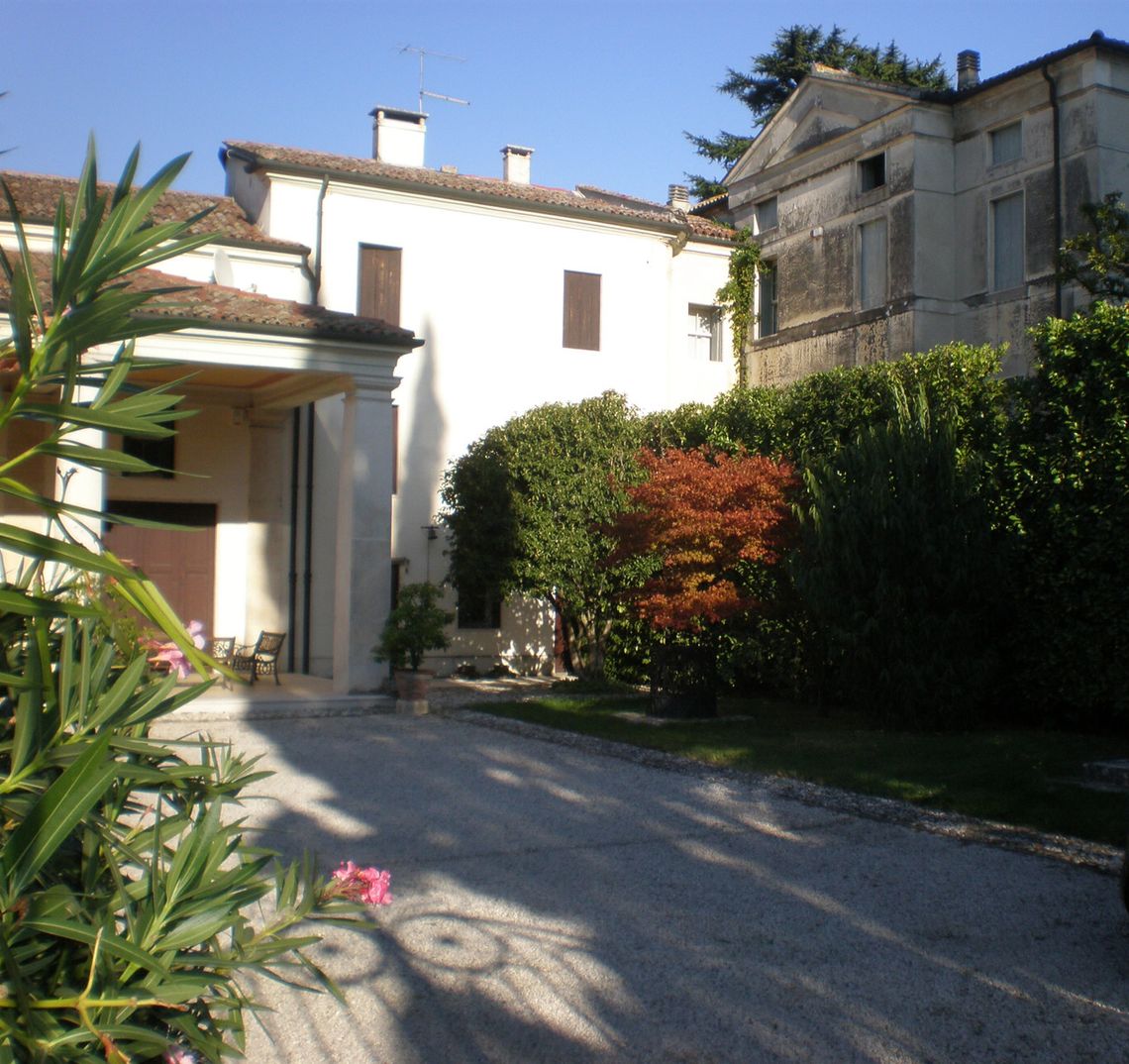 Il complesso sorge in zona collinare e si compone di più edifici indipendenti, disposti lungo una serie di terrazzamenti naturali: il corpo padronale, orientato a sud-ovest; una barchessa e un lungo rustico, entrambi novecenteschi, ad un livello leggermente inferiore; sul retro della villa si sviluppa un giardino pensile e una cancellata segna l'ingresso alla proprietà.