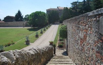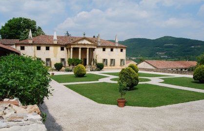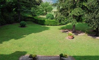 L'area verde si articola su tre terrazzamenti cinti da mura. La villa si trova al centro delle corti ed è preceduta da un giardino all'italiana. A est, più a valle, si trova un altro giardino con prato inglese, antistante le vecchie stalle. A nord il vecchio brolo è stato trasformato in parco romantico prospiciente il fronte posteriore della villa.