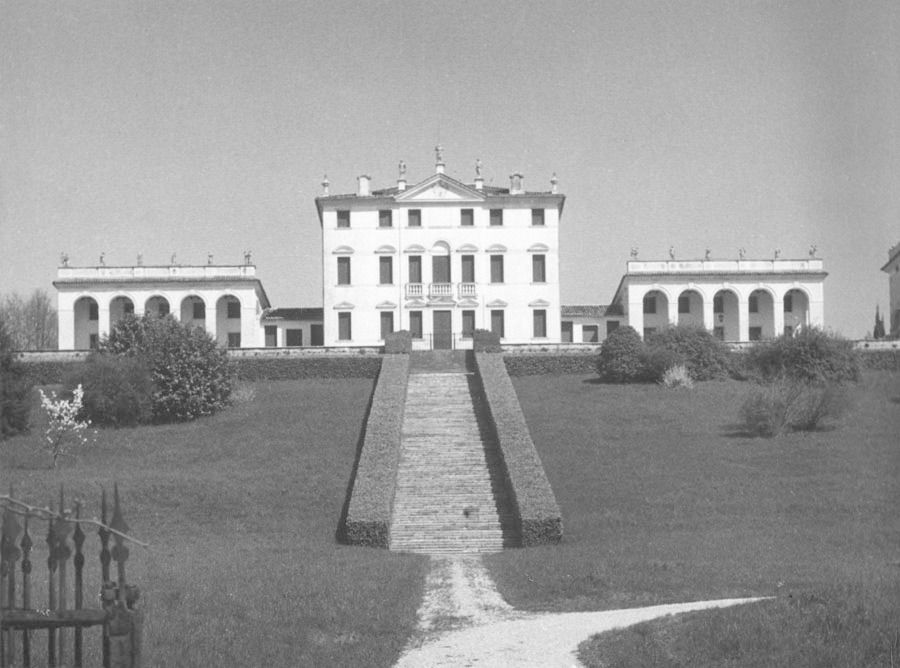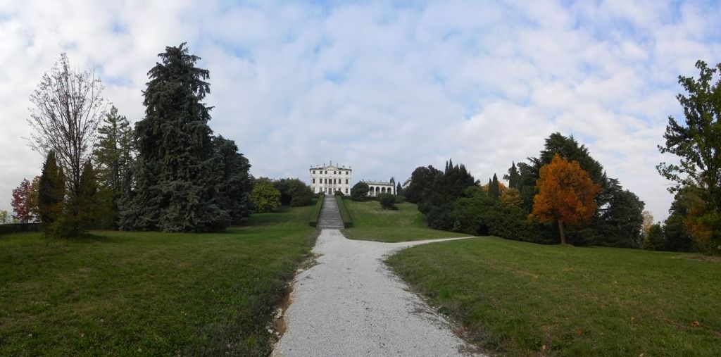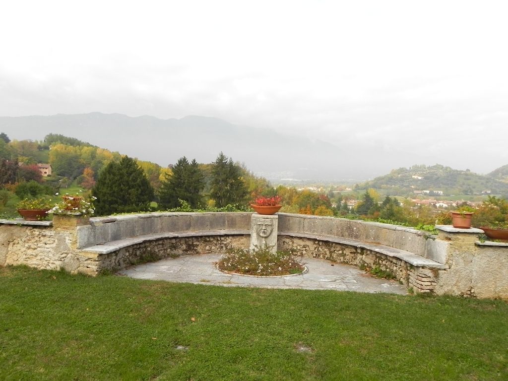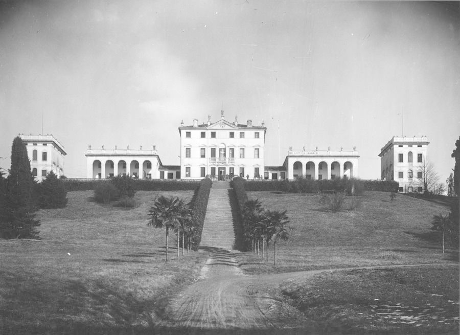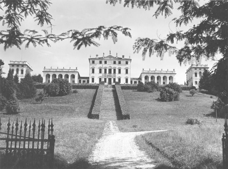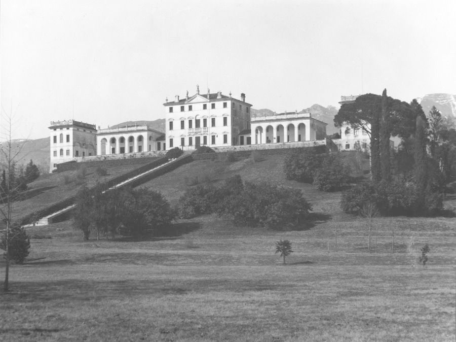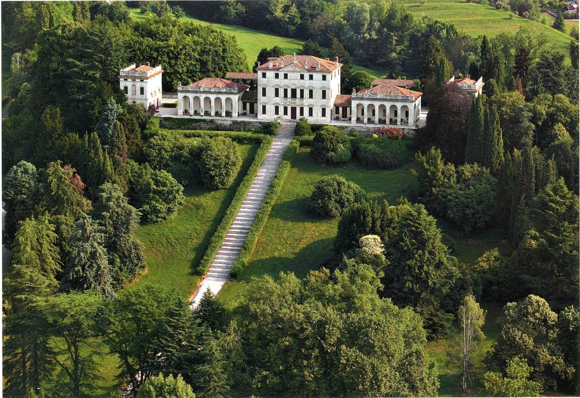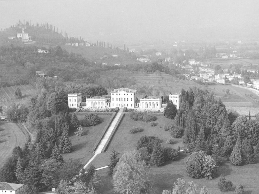 La villa, articolata ma compatta, è posta al centro della vasta tenuta, su una sorta di pianoro da cui poi il terreno degrada verso la campagna sottostante. A sud, la scalinata frontale termina direttamente in una stretta corte-giardino, leggermente terrazzata, che abbraccia la villa, sia davanti che sul retro, offrendo un affaccio panoramico sia sul lato meridionale che su quello settentrionale. Sulle pendici del colle ai lati del complesso si estende un ampio parco.