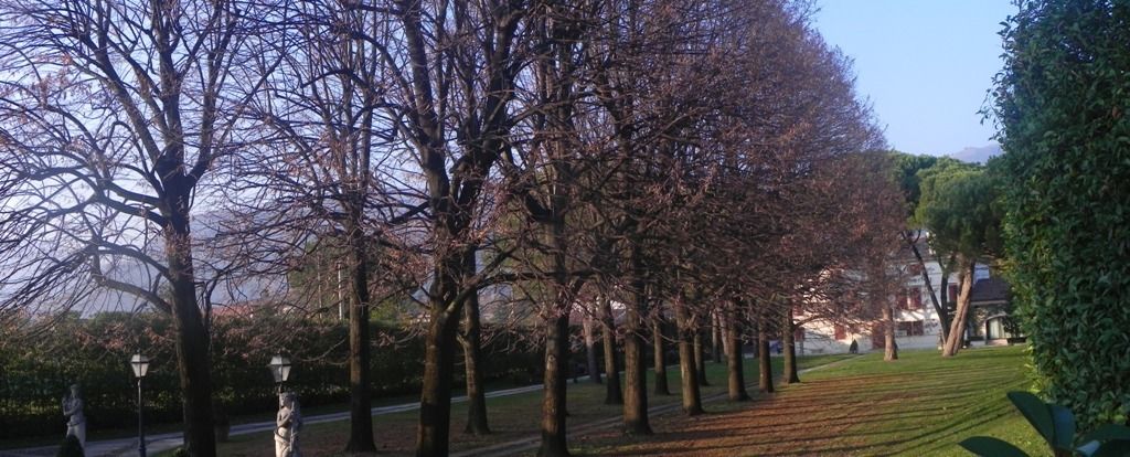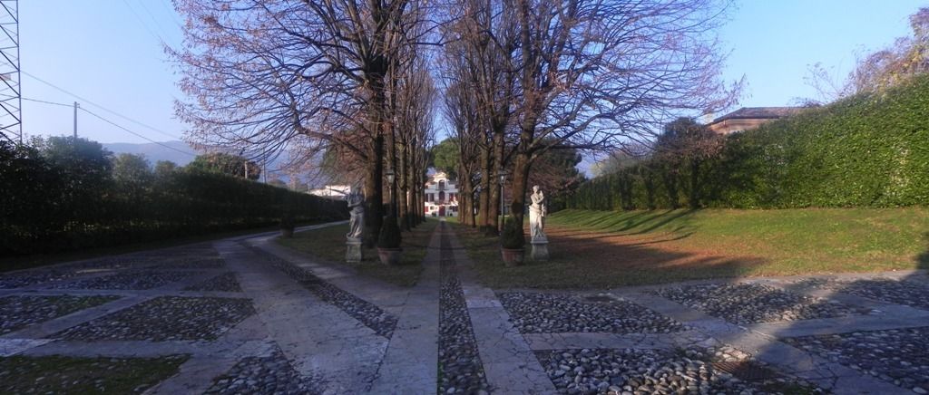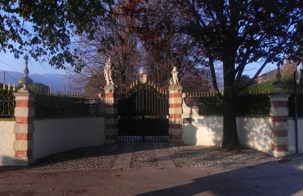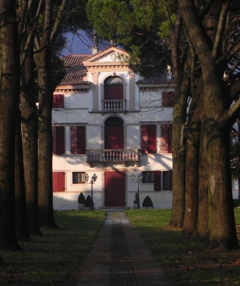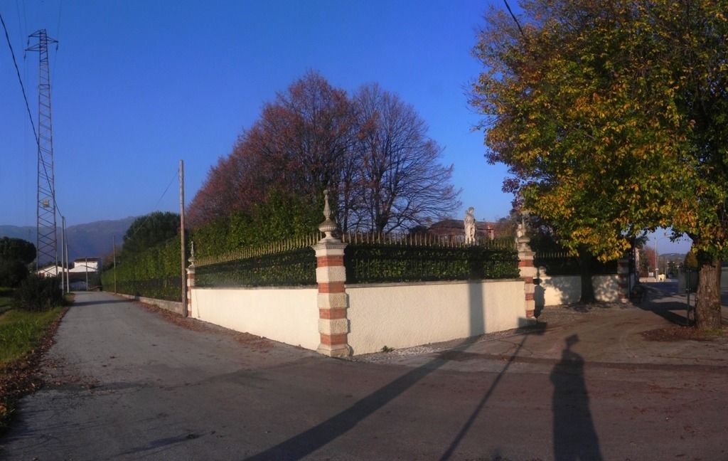 La proprietà è impostata su un lotto di terreno di forma stretta e allungata con lasse maggiore orientato nord-sud. Il corpo padronale è collocato nella parte nord della proprietà ed un lungo viale dingresso alberato la collega al cancello dingresso e divide in due il giardino posto a sud. Sul retro della villa si sviluppa un giardino con fitta vegetazione.