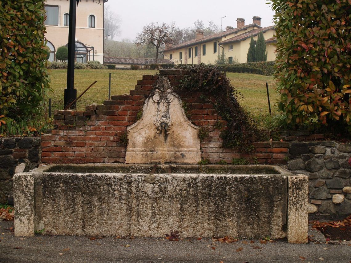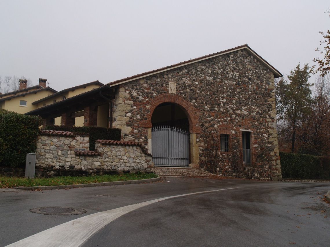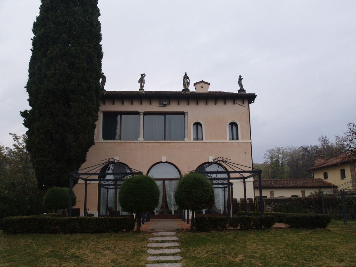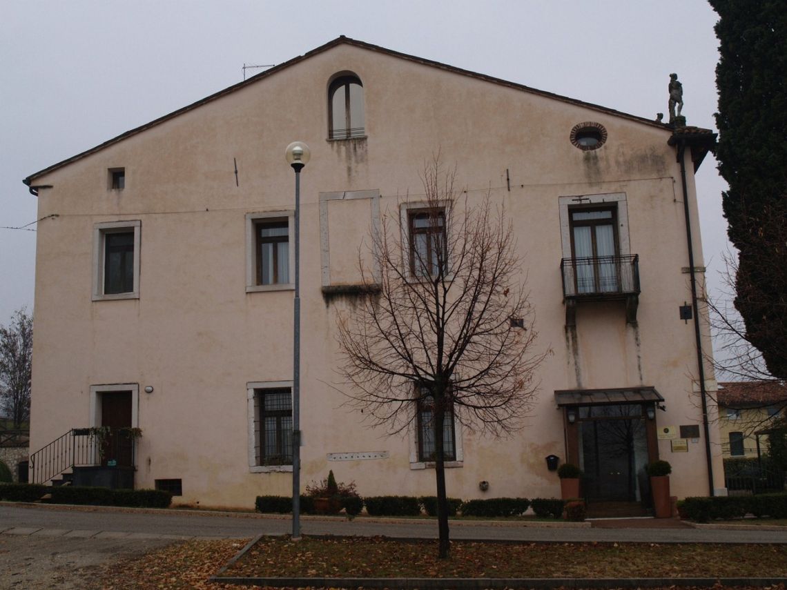 La villa sorge allapice settentrionale del piccolo lotto di proprietà, orientata a sud verso la strada, da cui la separa un piccolo giardino recintato da siepe; sul lato est si allunga il corpo ortogonale di una barchessa porticata, oggi trasformata in più unità abitative, i cui giardini privati declinano lungo la collina. Particolare interesse riveste la fontana ad uso pubblico, collocata a sud, lungo la strada.