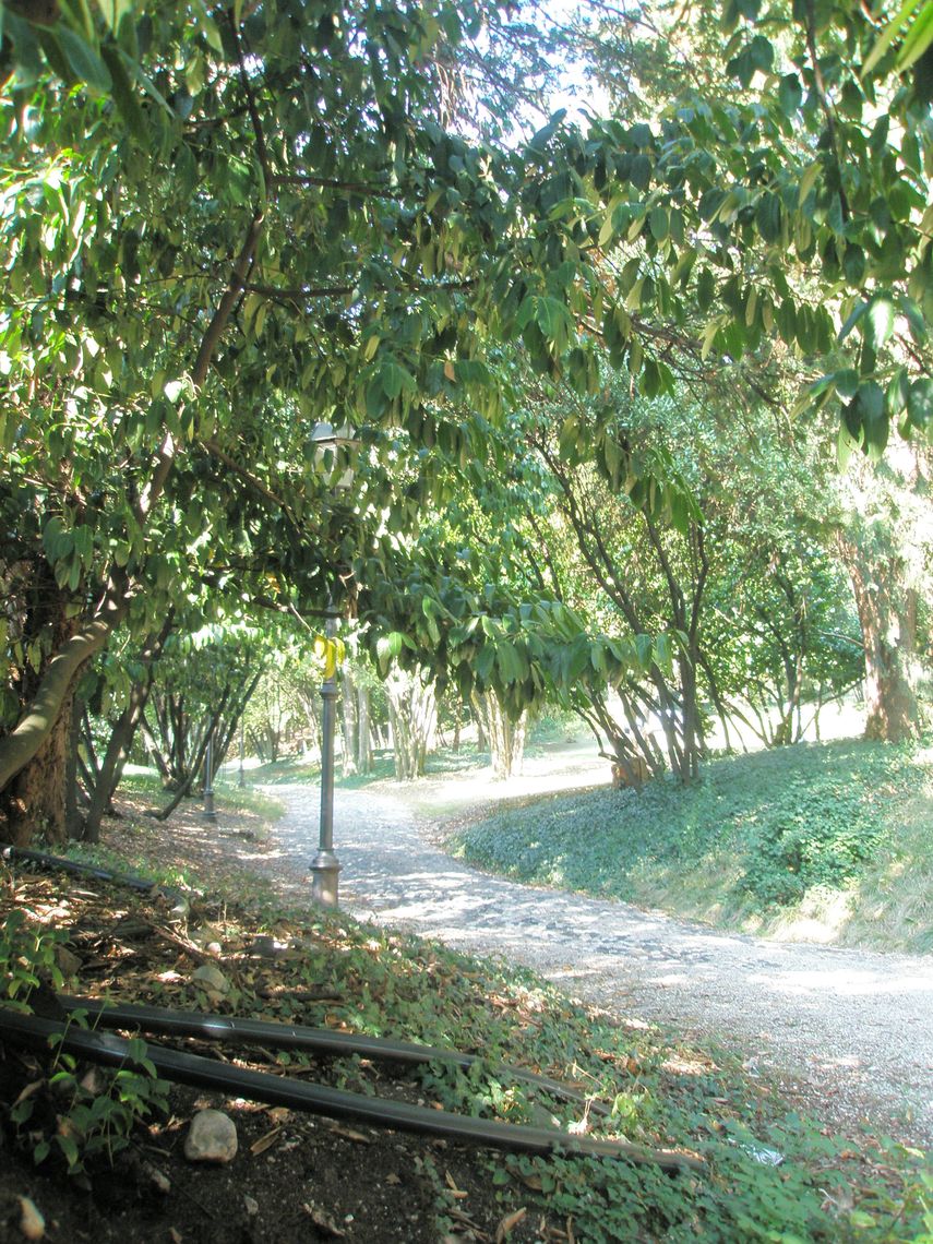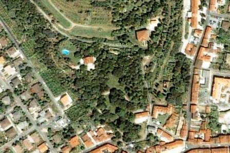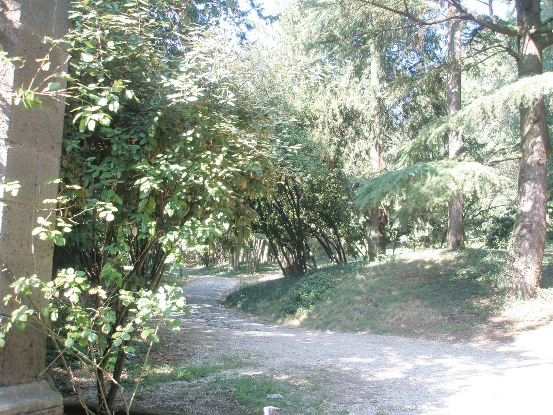Il complesso si sviluppa lungo un versante collinare esposto a sud: dallingresso posto sulla strada del paese si sviluppa un ampio parco ricco di vegetazione, in cui si snoda un percorso a tornanti che sale fino alla villa ed alla sua adiacenza, collocate sulla sommità del lotto di pertinenza, rimanendo completamente occultati alla vista.