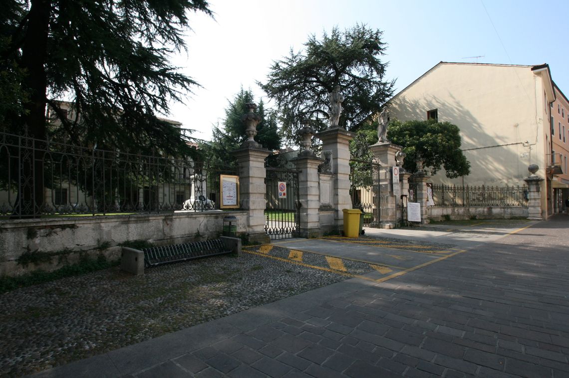Lo scoperto della villa comprende: una corte-giardino prospiciente il fronte settentrionale della villa, a cui si accede da una cancellata monumentale prospiciente la strada; un cortile rettangolare prospiciente il fronte meridionale della villa, pavimentato e attrezzato come spazio-gioco, a cui si accede dal colonnato della villa e dal vicino oratorio. Oltre al cortile, verso sud, si conserva un'ampia area verde, coperta da manto erboso e delimitata da un alto muro di recinzione, al centro del quale rimangono i due pilastri di una cancellata d'ingresso.