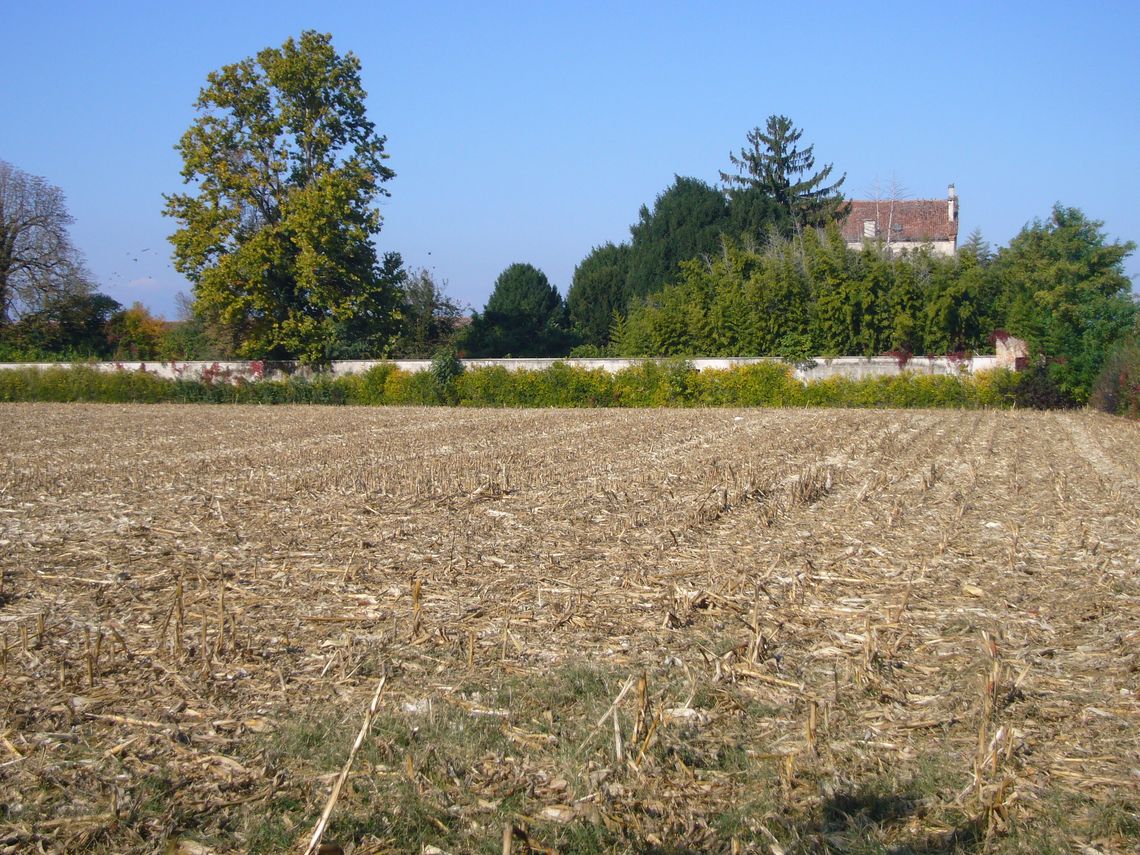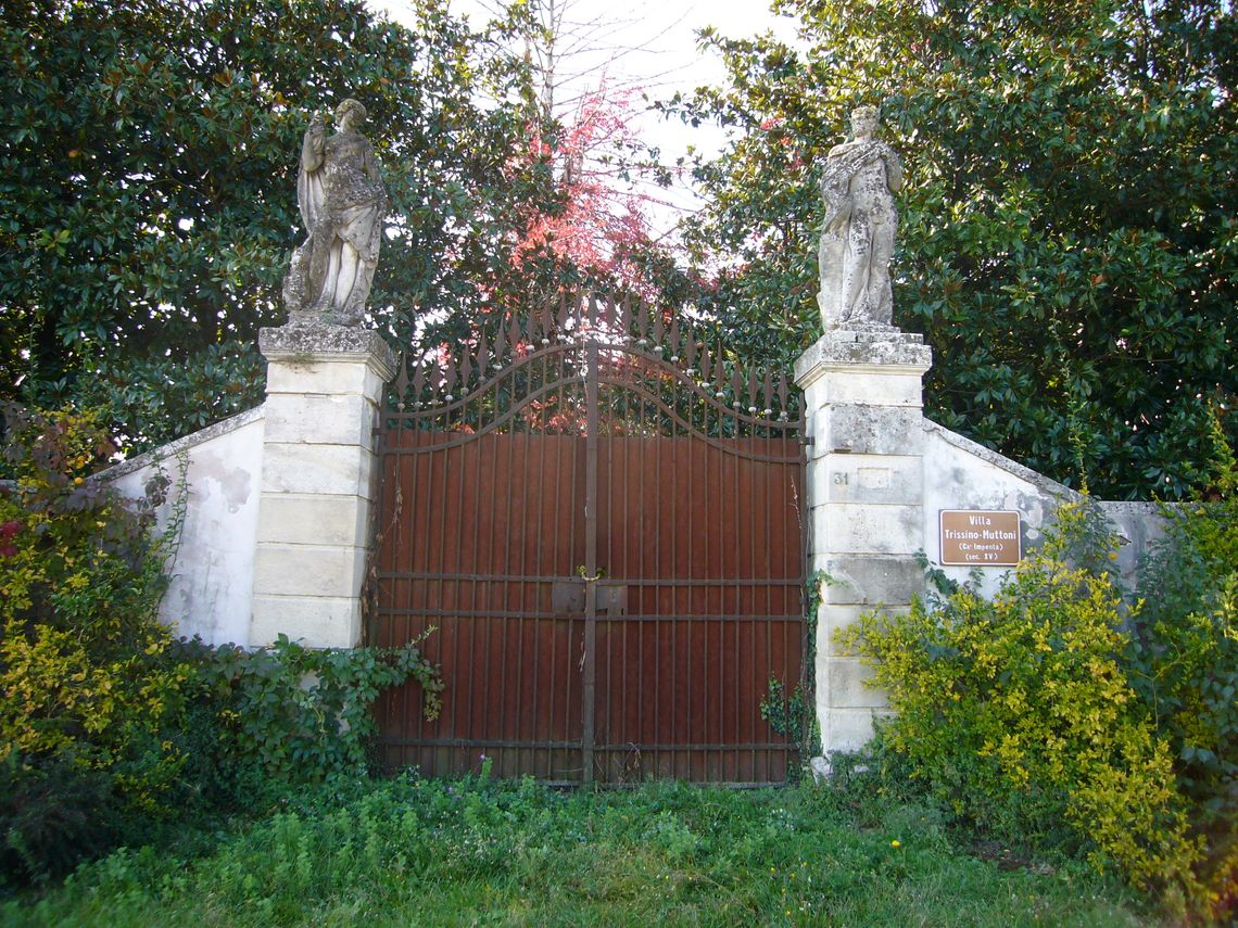 Il complesso occupa un lotto di terreno di forma rettangolare molto regolare, recintato su tre lati e delimitato a nord dai volumi allineati, ma non uniti tra loro, della villa, degli annessi rustici e delloratorio in prossimità della strada, che ne determina il limite orientale. Qui è posto lingresso principale contrassegnato da un vecchio cancello tra pilastri sormontati da statue e poco distante un portale architravato in pietra che costituiva lingresso pedonale. Un altro recinto più stretto delimita larea della corte agricola, ad ovest della villa.