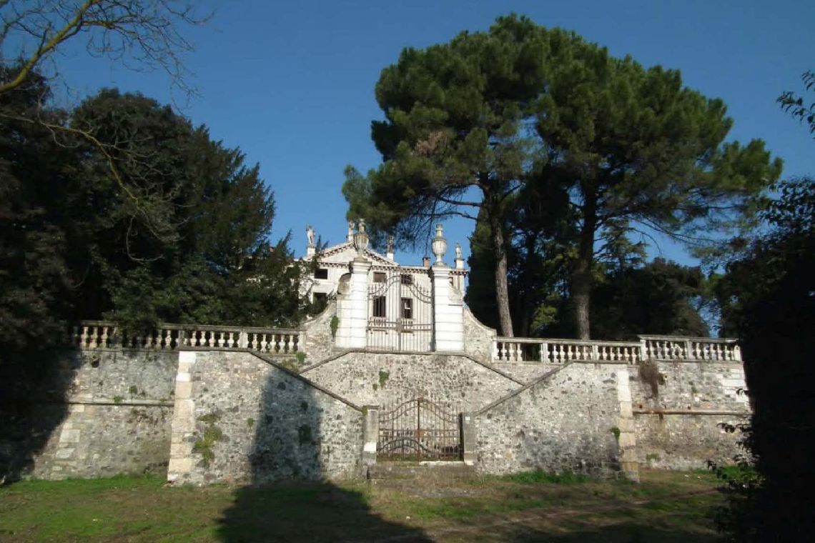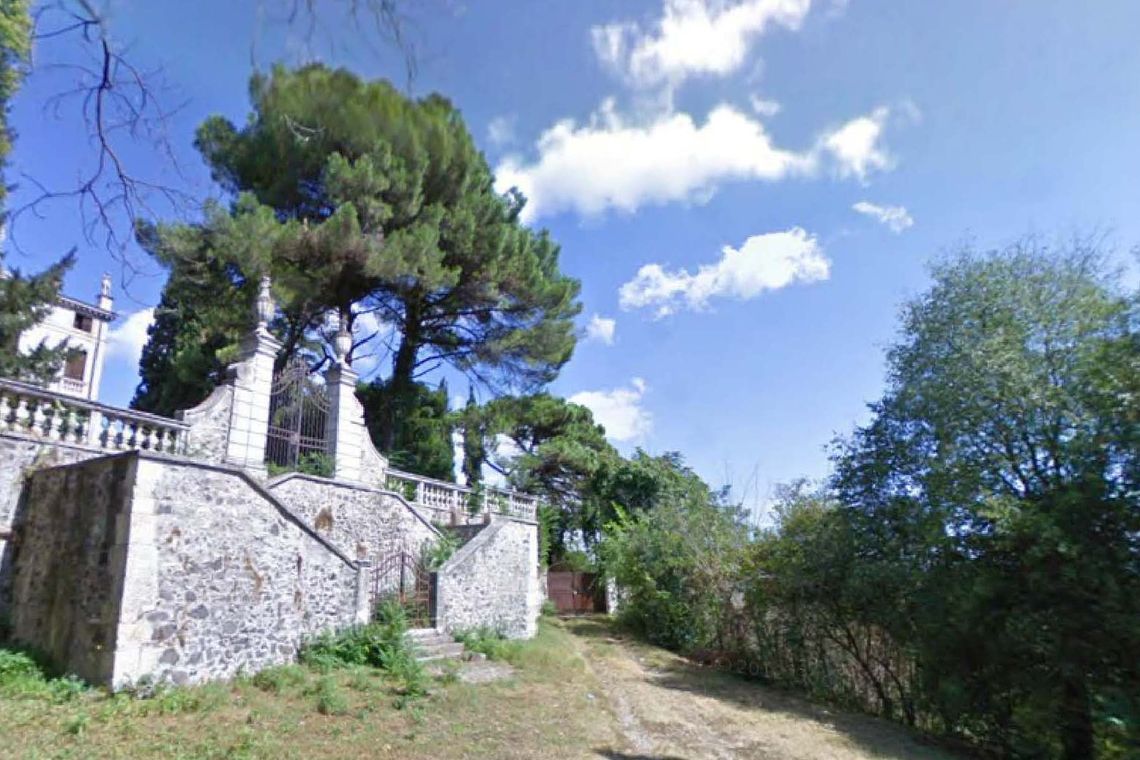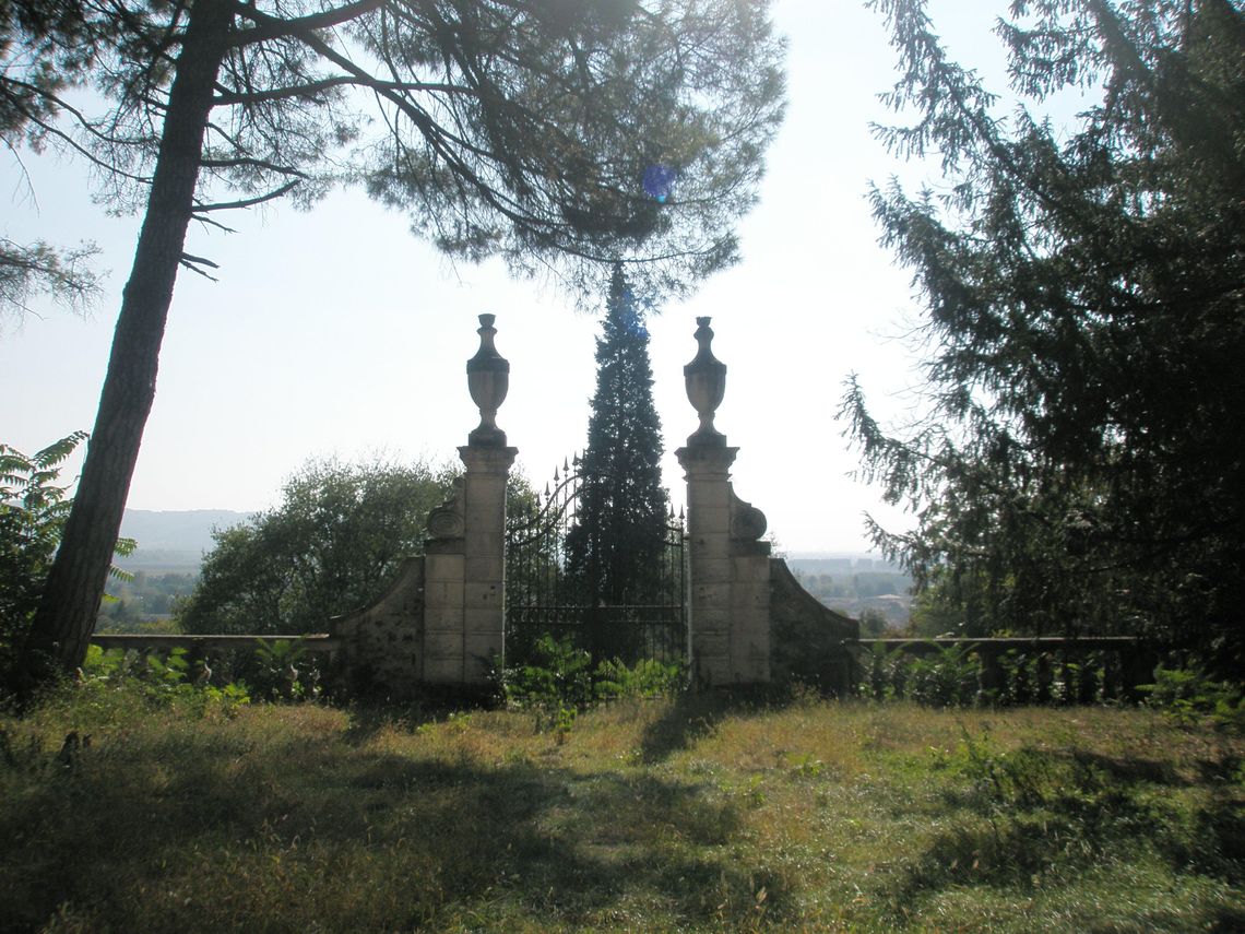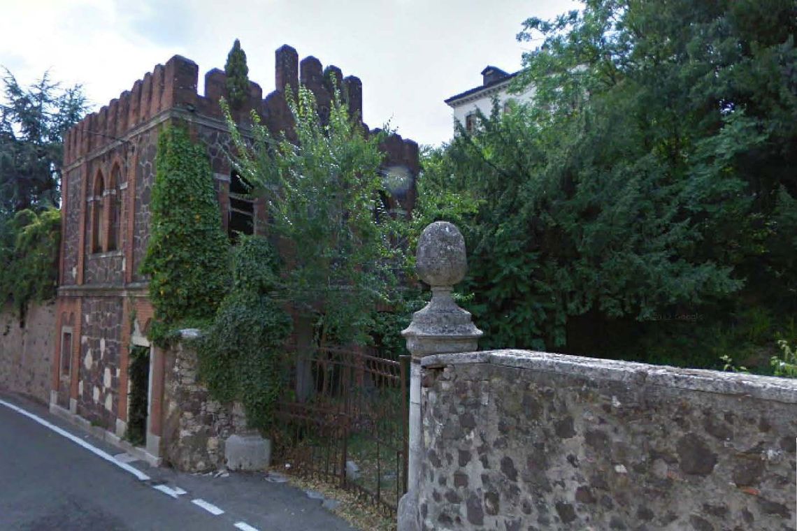 Villa e ruderi delle scuderie sorgono isolati al centro di un ampio parco ricco di vegetazione d'alto fusto, collegati tra loro da un percorso sinuoso che dalla villa posta sulla sommità scende fino al cancello di ingresso posto ad est, lungo la strada del centro abitato.