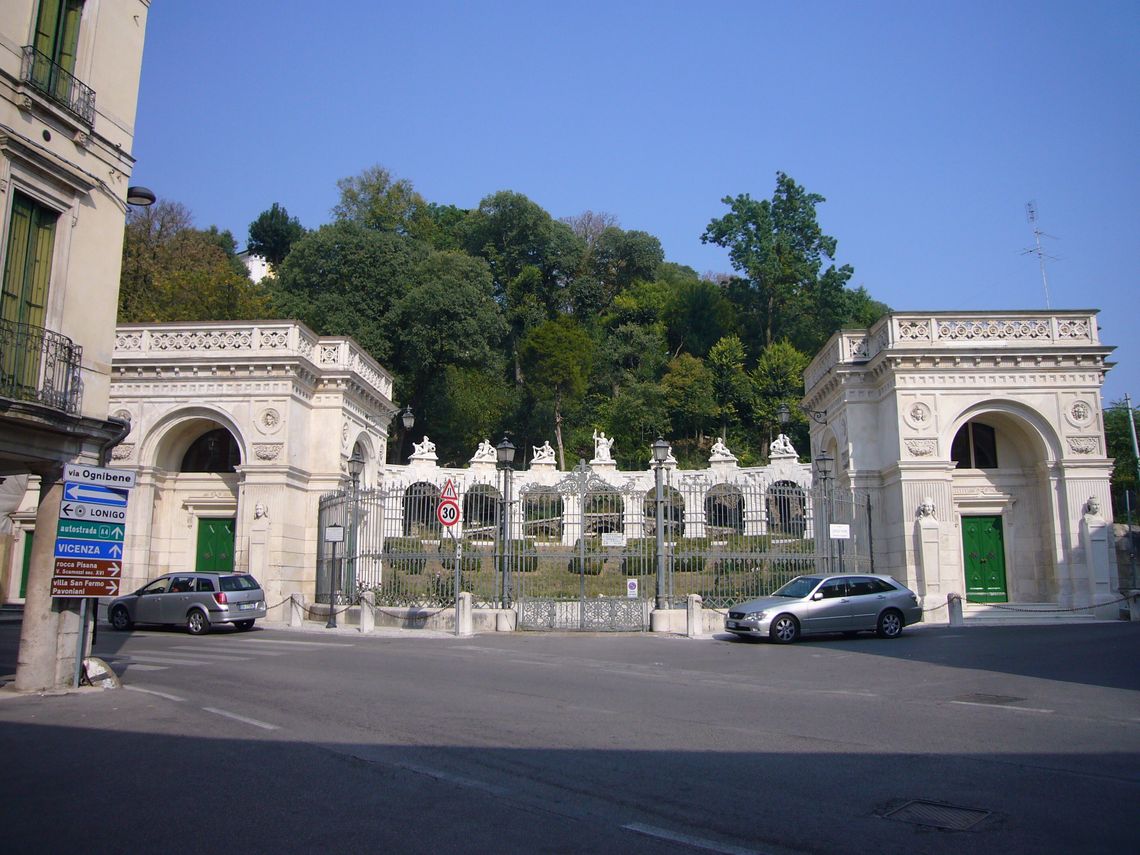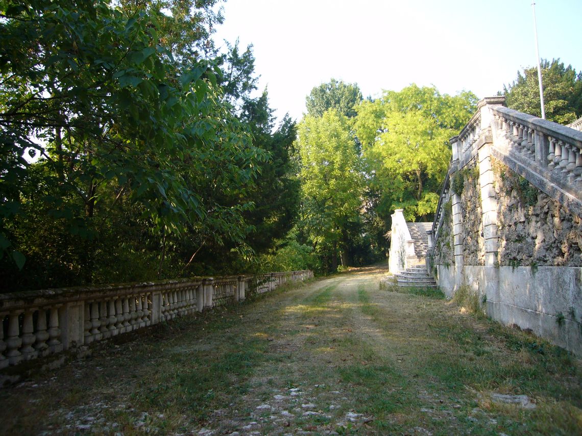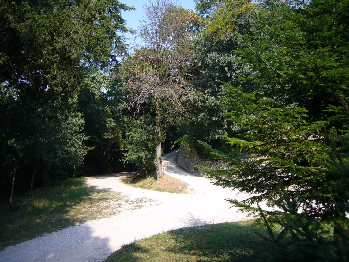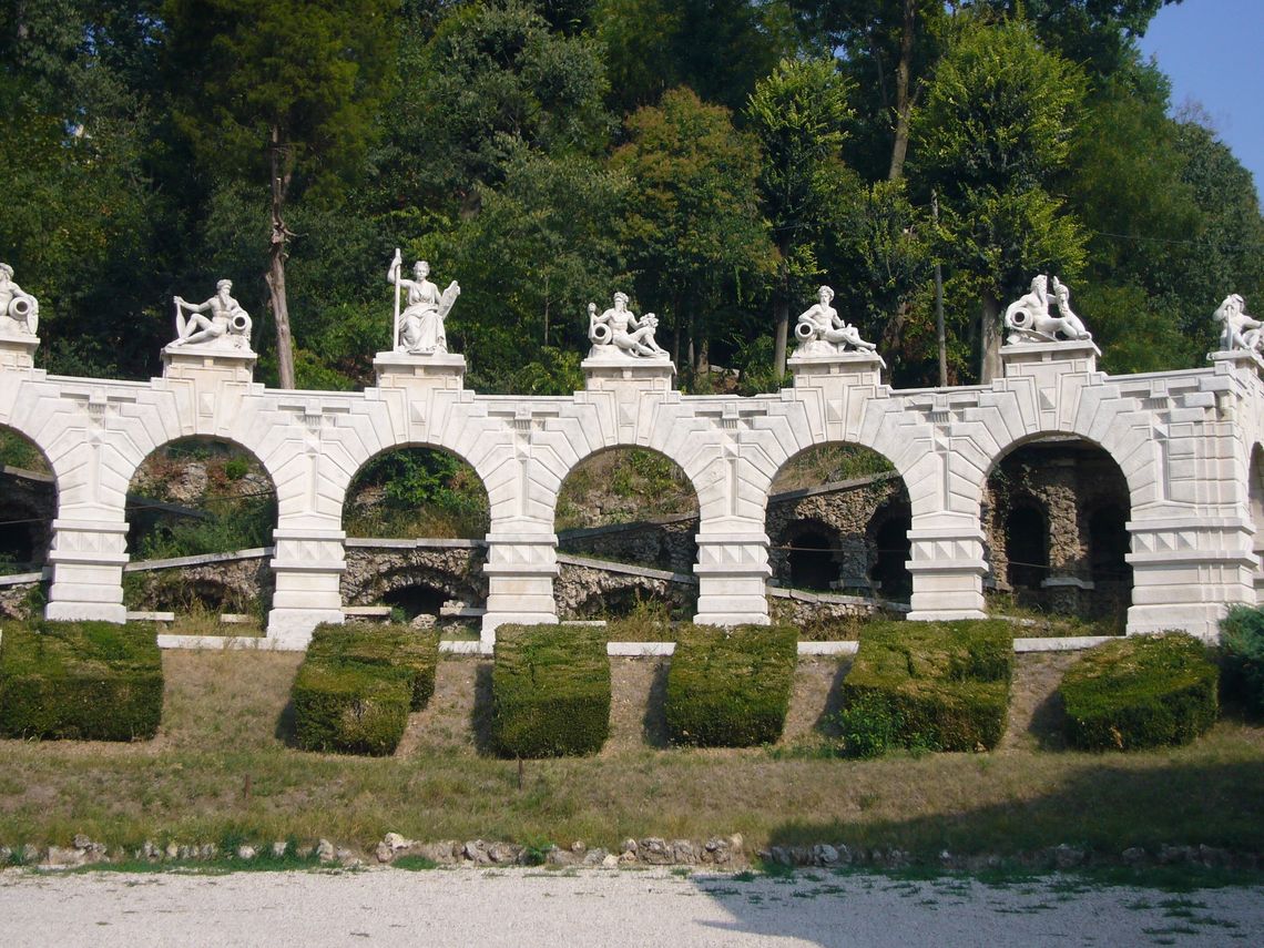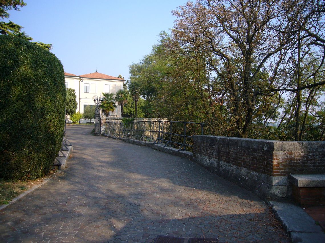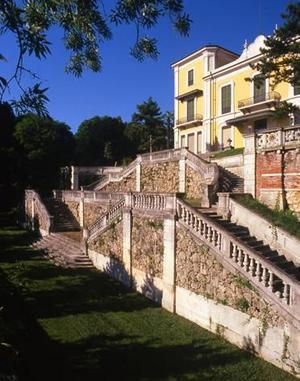 Dallentrata monumentale con l'allegoria dei fiumi, collocata a sud-ovest del colle lungo la strada comunale, parte un percorso a tornanti che sale sul versante del colle e giunge ad una scalinata, da cui si può accedere al corpo centrale della villa. Buona parte dell'area verde ad est della villa è adibita a vigneto ed orto (nella zona della Cappuccina e di Santa Colomba) e una parte a bosco.