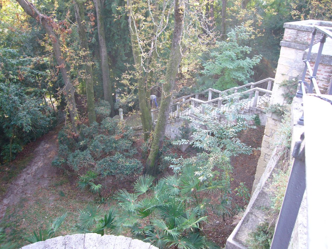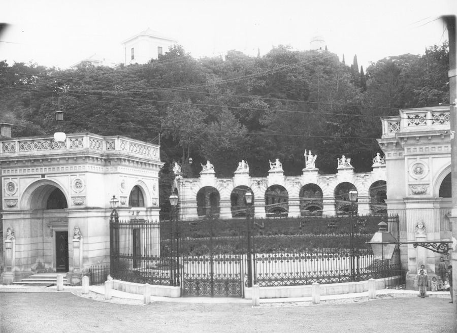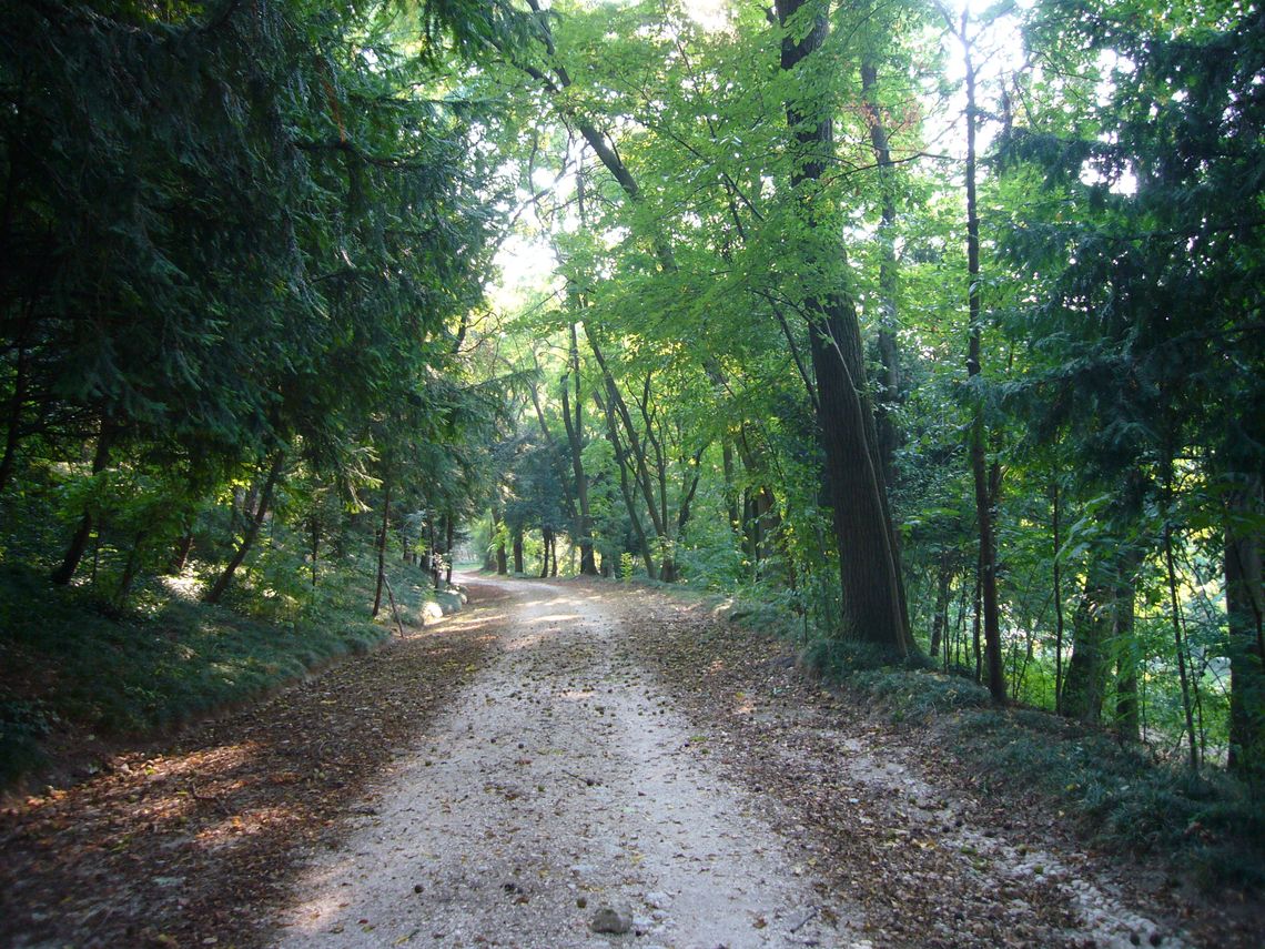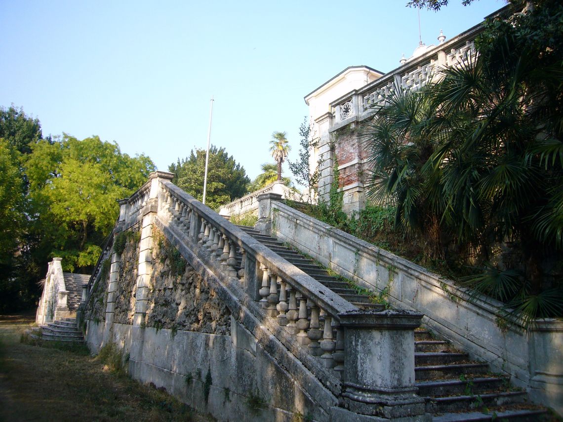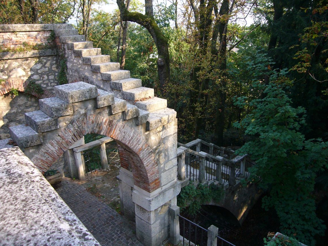 Dallentrata monumentale con l'allegoria dei fiumi, collocata a sud-ovest del colle lungo la strada comunale, parte un percorso a tornanti che sale sul versante del colle e giunge ad una scalinata, da cui si può accedere al corpo centrale della villa. Buona parte dell'area verde ad est della villa è adibita a vigneto ed orto (nella zona della Cappuccina e di Santa Colomba) e una parte a bosco.