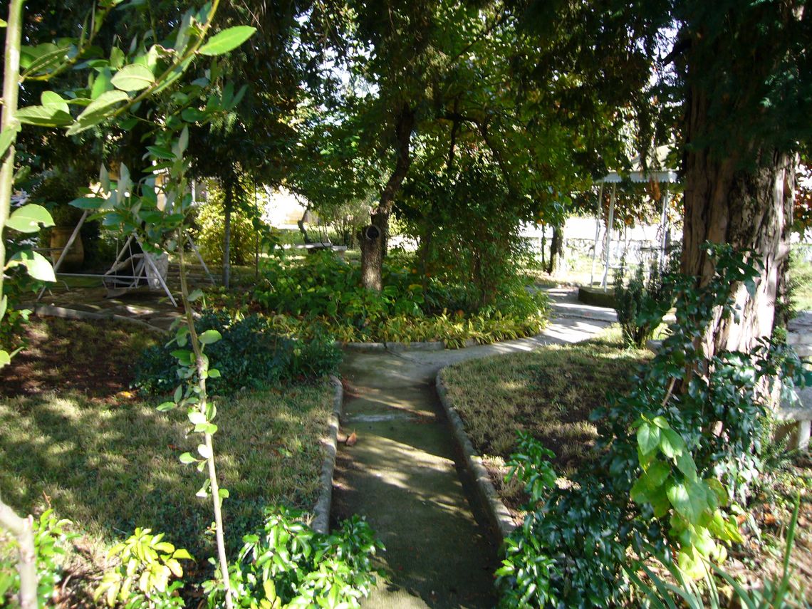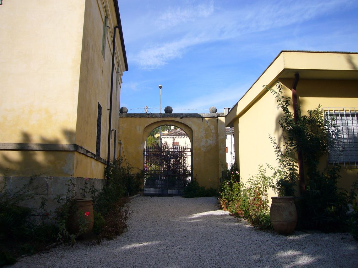 Villa e barchessa si attestano con il fronte nord direttamente sulla sede stradale di antico impianto, dove si colloca anche il cancello dingresso; a sud gli edifici affacciano su uno spazio aperto in cui è possibile distinguere un cortile interno, un piccolo giardino ed uno spazio verde coltivato.