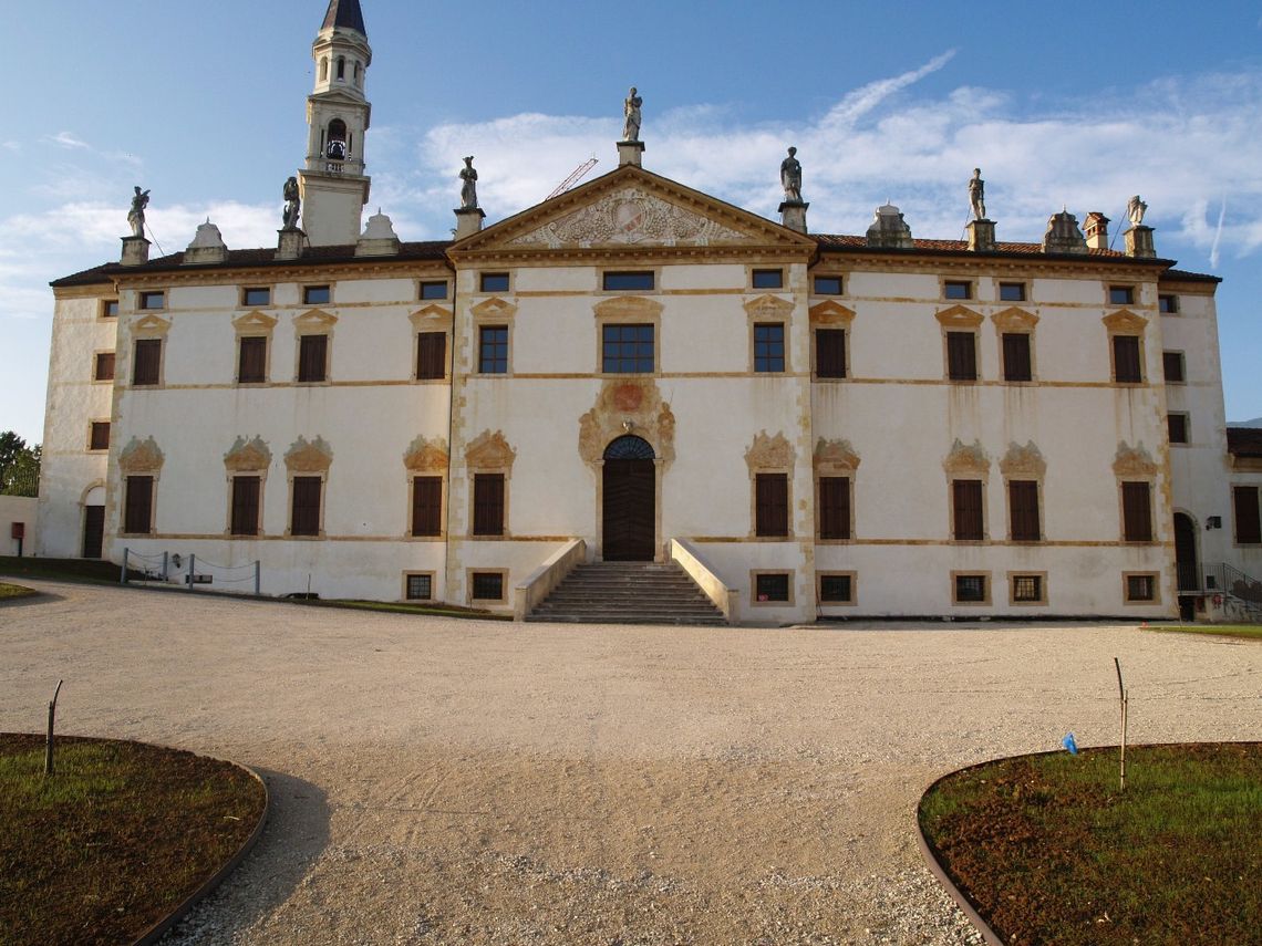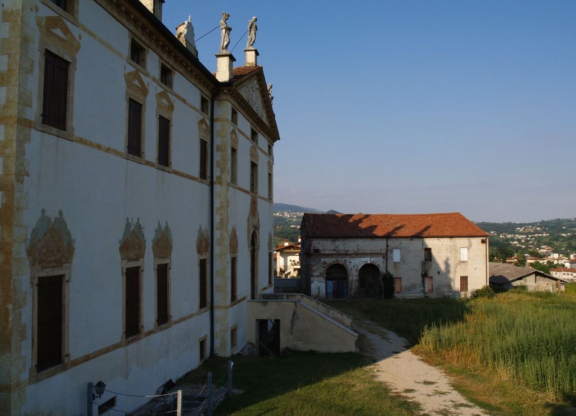 La villa è posta con lanonimo fronte nord prospiciente la strada che sale alla chiesa parrocchiale; davanti si sviluppa unarea verde terrazzata, delimitata ad est dal piccolo corpo di un annesso rustico; ai lati del complesso sono stati ricavati due parcheggi pubblici privi di elementi arborei.