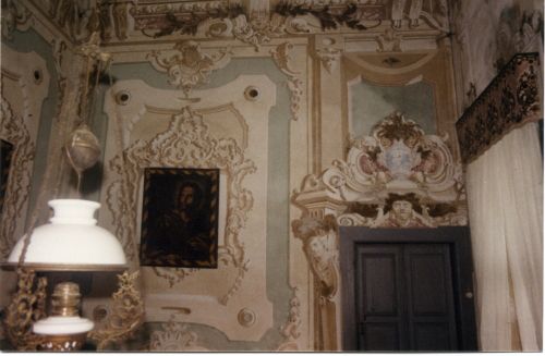 - Descrizione: Stucchi di questo tipo coprono pareti e soffitti dell'atrio e della sala principale del corpo padronale.