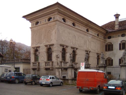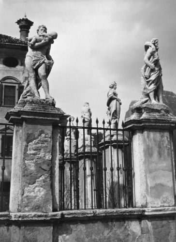 - Descrizione: Caratteristiche statue raffiguranti divinità pagane e personaggi dell'epoca sono poste sul piccolo recinto verso la piazza.