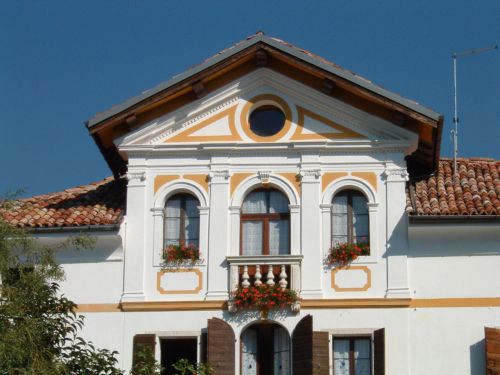 Complesso costituito dal corpo padronale timpanato, di forma rettangolare e a schema tripartito, e dalla barchessa disposta ortogonalmente su un suo lato.Specifiche: