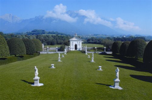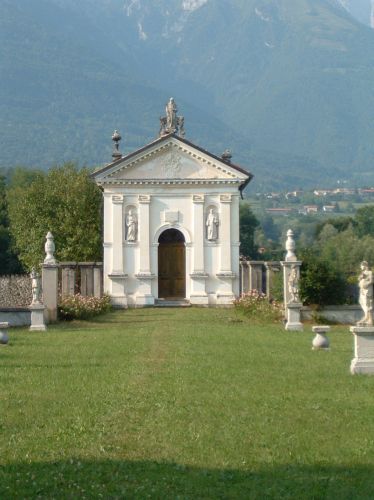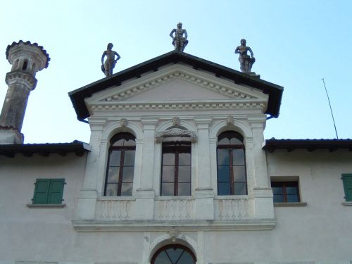 - Descrizione: Numerose statue decorano il parco (qui soprattutto del Seicento e Settecento, tra cui alcune opere del Marinali), il prospetto del corpo padronale, poste sul poggiolo e sul timpano, e quello dell'oratorio, con quella di S.Francesco sul timpano e quelle raffiguranti due santi nelle nicchie.
