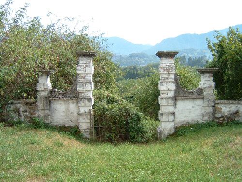 - Osservazioni: Ciò che resta del giardino, posto su un terrazzamento, è cinto verso valle da un basso muro che al centro si apre ad esedra, probabile primitivo accesso monumentale.