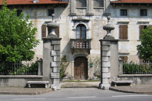 - Descrizione: La chiave di volta dell'arco del portone d'ingresso è scolpita con uno stemma abbracciato da un'aquila bicipite, probabilmente quello dei conti di Cesana.