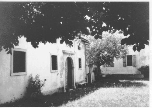 - Osservazioni: Il rustico che chiude ad est il giardino verso la strada presenta in facciata una loggia con pilastri, secondo una precisa tradizione costruttiva locale.