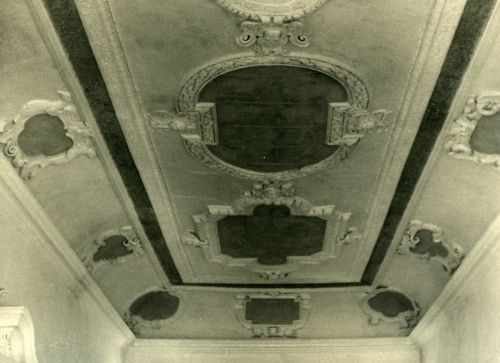 - Descrizione: In un vano del primo piano è presente un'interessante decorazione ad affresco, che culmina nel tondo centrale con la raffigurazione di una "Madonna su nubi sostenuta da putti".