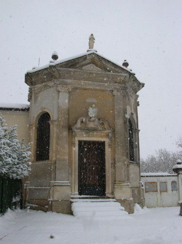 - Descrizione: Sopra le monofore che illuminano il piano nobile vi è un alto fregio su cui si imposta il timpano triangolare.